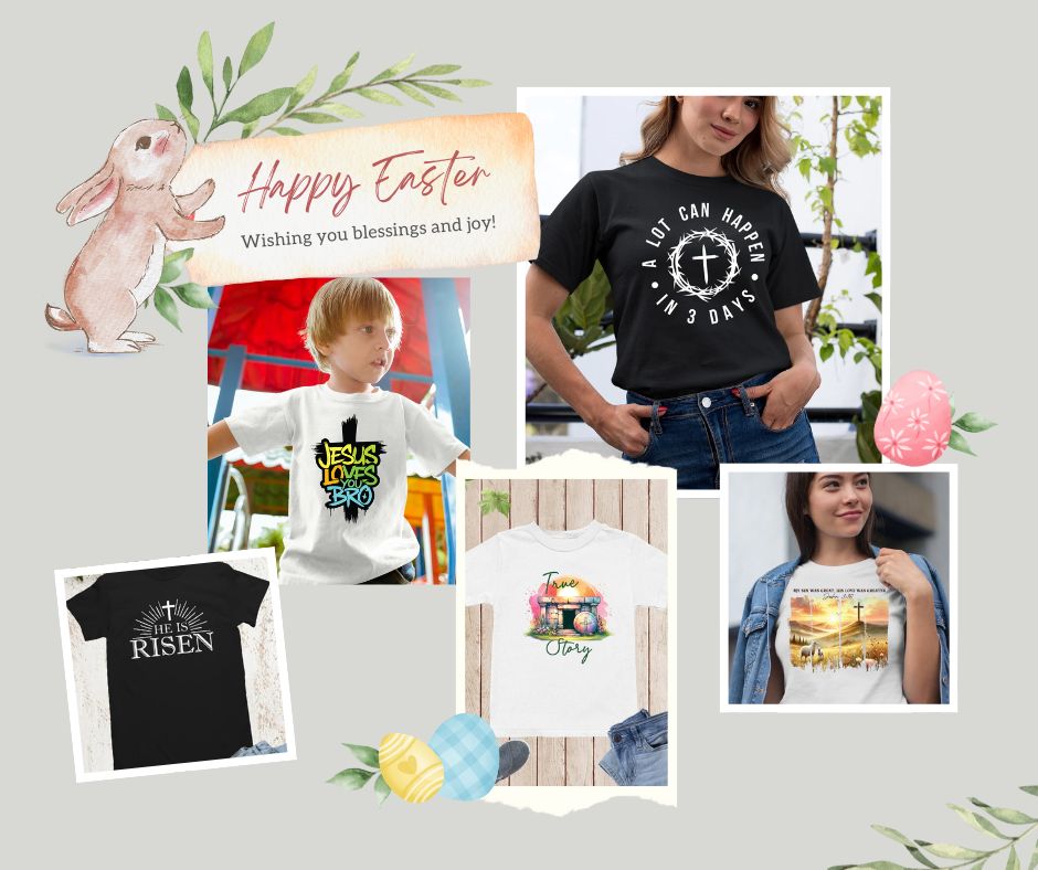 Whether you're headed to sunrise service, helping with the church egg hunt, or hosting a family dinner, these T-shirts allow you to dress comfortably while reflecting your Christian values. Many feature powerful scriptures, symbolic designs, and uplifting messages that inspire faith in others.