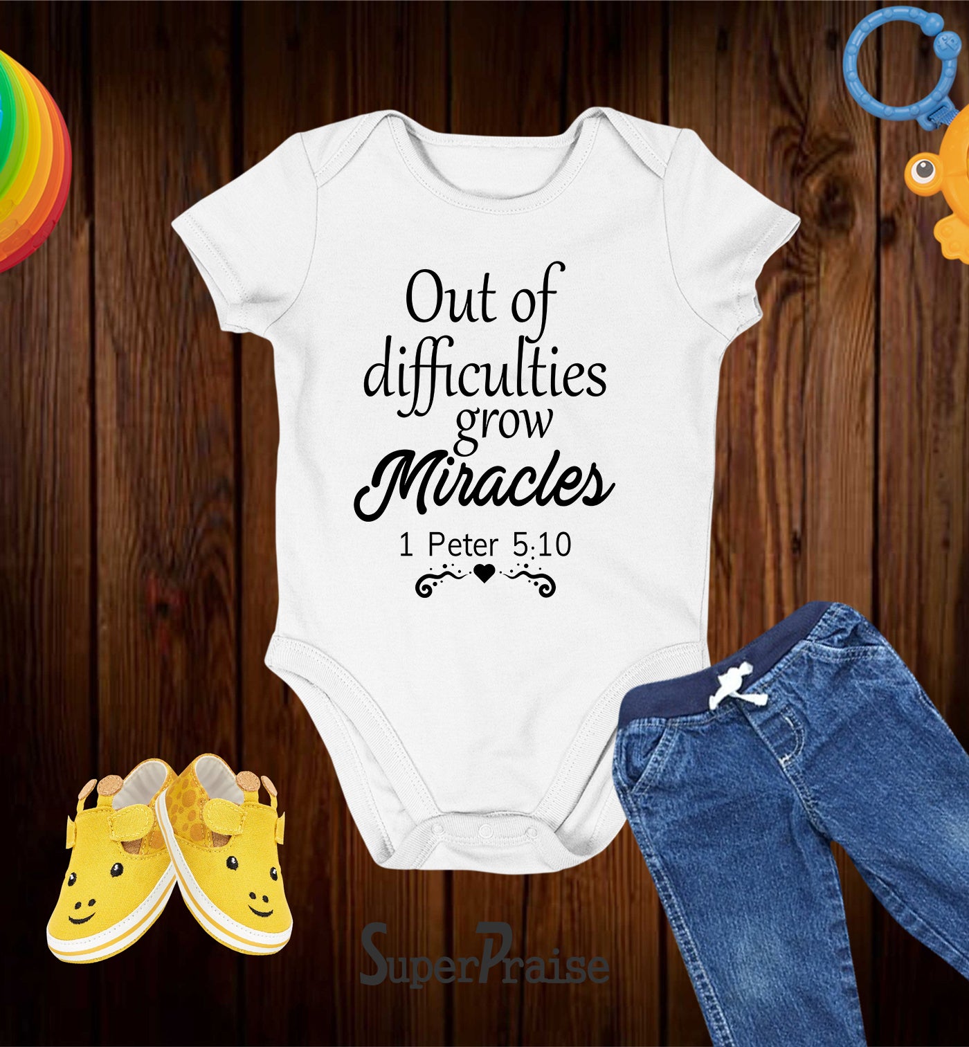 Out Of Difficulties Grow Miracles Bible verse Baby Bodysuit