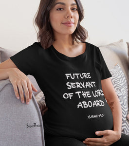 Future Survent Of The Lord Abroad Maternity T Shirt is stylish for mama to be and very comfortable to wear. This bible scripture maternity t shirt is designed to show off your blessings from the Lord. Wear this pregnancy t shirt to carry the promise of God in you and your little one life. The children are a gift from God.