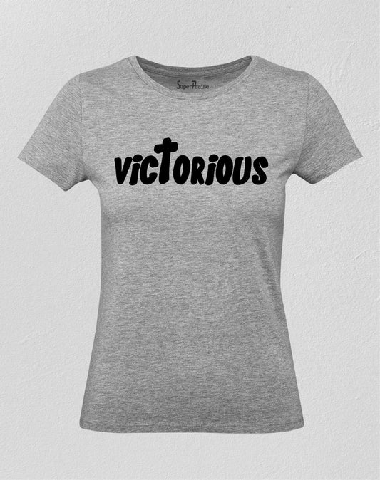 Christian Women T Shirt Victorious Cross Slogan Tee