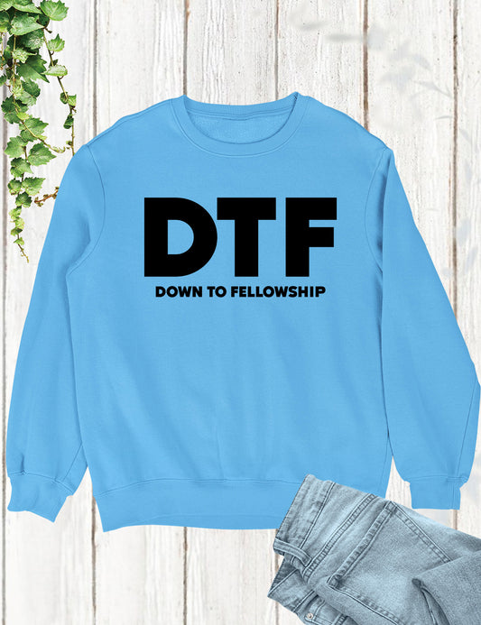 DTF Down to Fellowship Christian Sweatshirts Funny