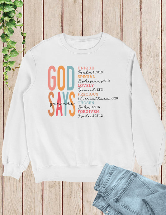 God Says I Am Special Unique Lovely Precious Chosen Forgiven Bible Verse Sweatshirts