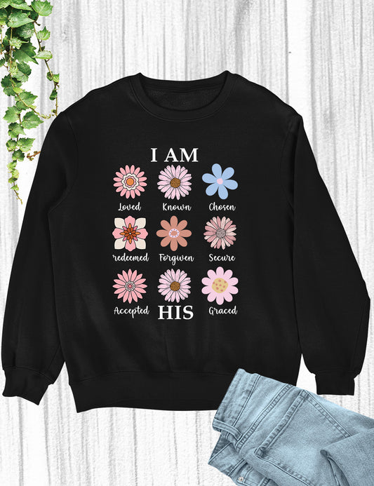 I AM HIS Loved Known Chosen Redeemed Forgiven Secure Accepted Graced Christian Vintage Distressed Flowers Sweatshirt