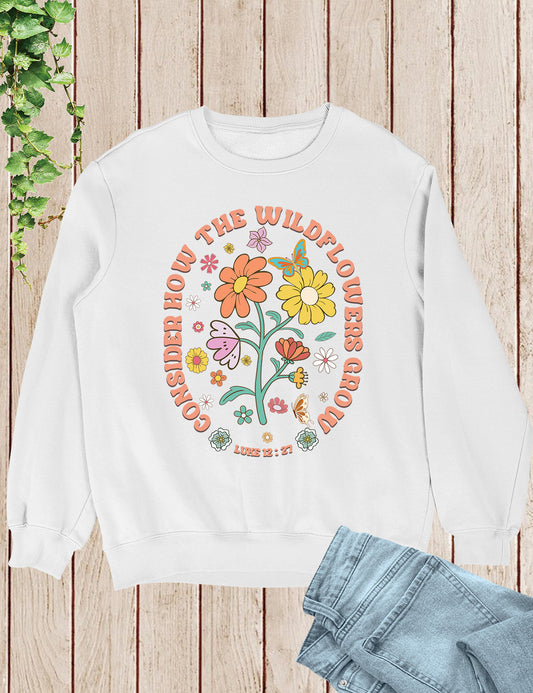 Bible Verse Sweatshirt Consider How Wild Flowers Grow Women Christian Sweatshirts