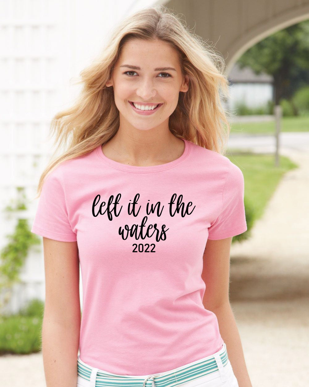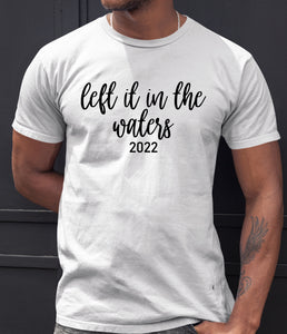Dress your little one for their special day with our Left It In The Water 2022 Baptism T Shirt. Made with comfortable fabric, this shirt features the phrase "Left It In The Water" to symbolize their baptism. Celebrate this milestone with style and meaning.