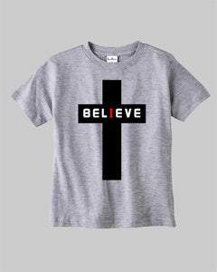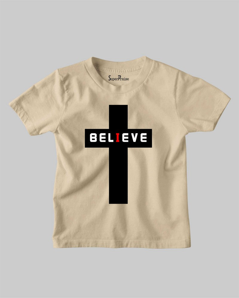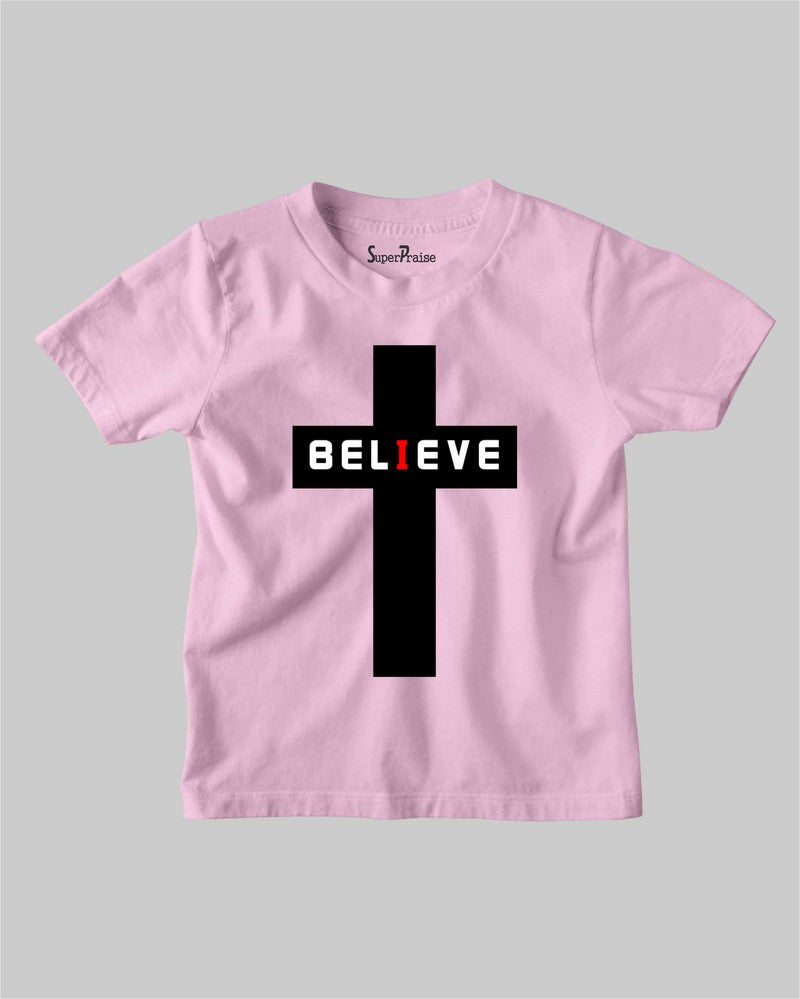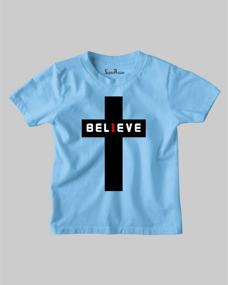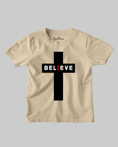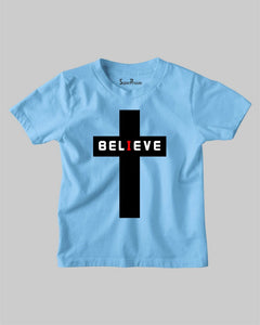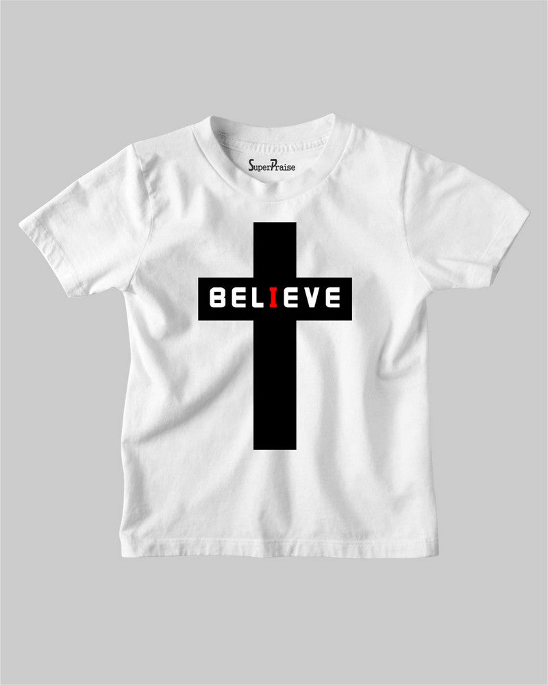 Believe Faith Bible Verse Christian Cross Jesus Christ Kids Tshirt