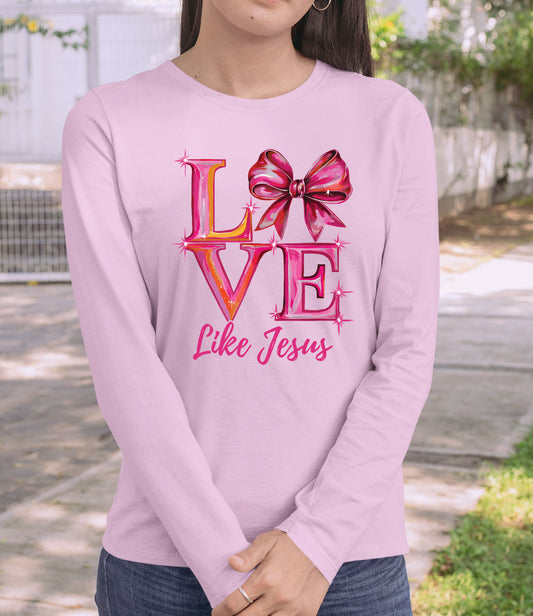 Love Like Jesus Pink Bow Long Sleeve Christian T Shirts