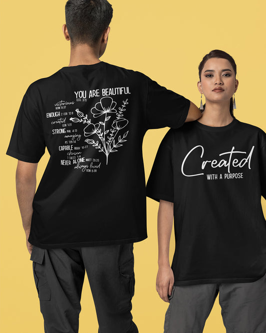 You Are Beautiful Victorious Enough Strong Capable Never Alone Always Loved Front Created With A Purpose Christian T Shirts