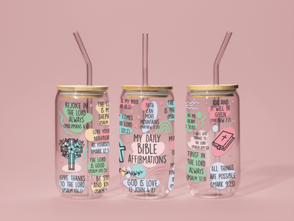 Stay hydrated and inspired with the Affirmation Tumbler My Daily Bible Verse. This tumbler comes with a convenient lid and straw, making it perfect for on-the-go use. Each day, be reminded of a powerful and uplifting Bible verse to keep you motivated and encouraged. A must-have for any Christian seeking daily inspiration.