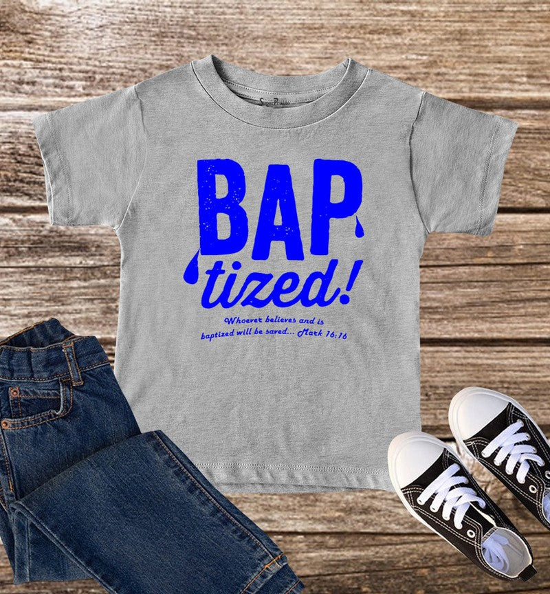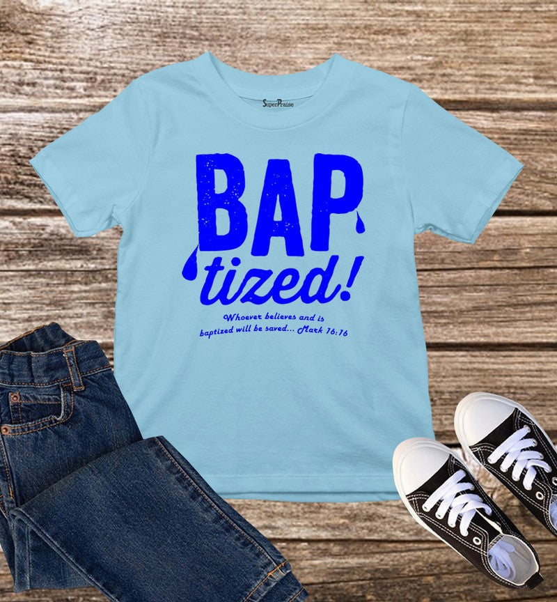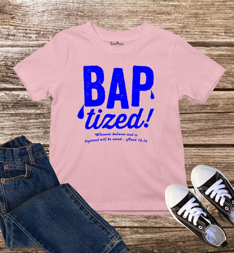 Baptized Kids christian T Shirt is cool stylish and comfy to wear while proclaiming the gospel of Christ. This Christian children t shirts come in unisex style for boys and girls.