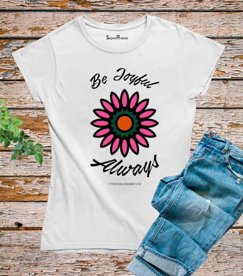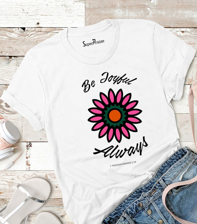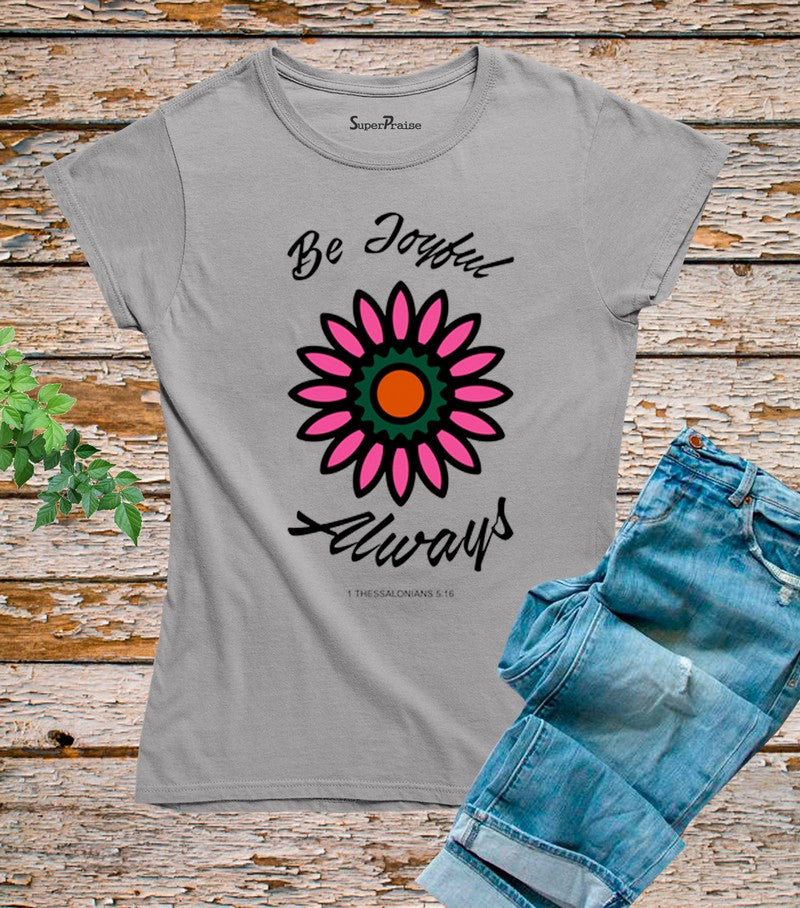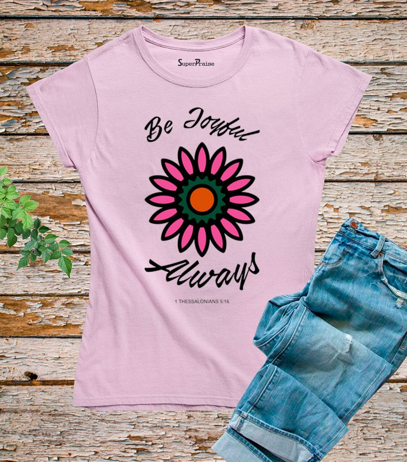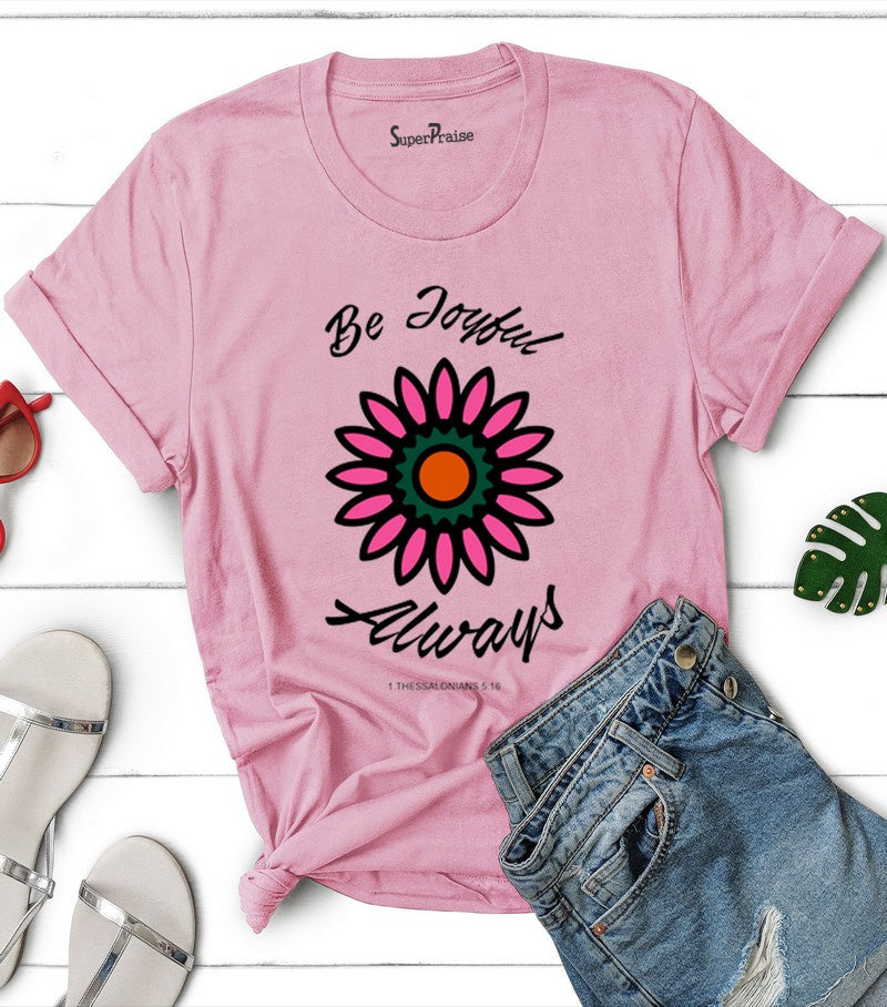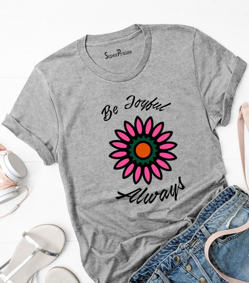 Be Joyful Always Christian Women T Shirt is stylish and comfortable to wear while spreading the gospel. This printed bible tee is a way to let people know that you belong to Jesus Christ and proclaim the love of God without saying a word.