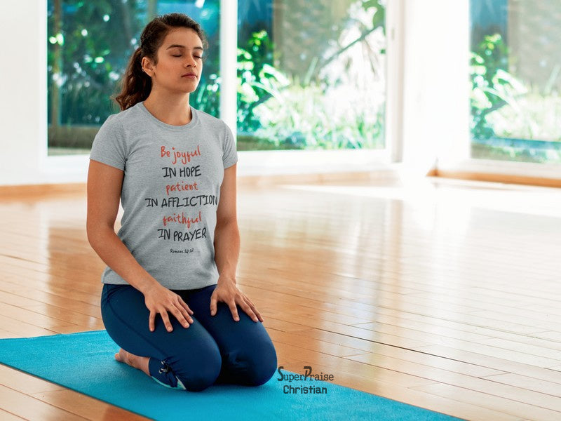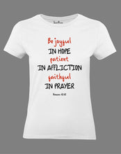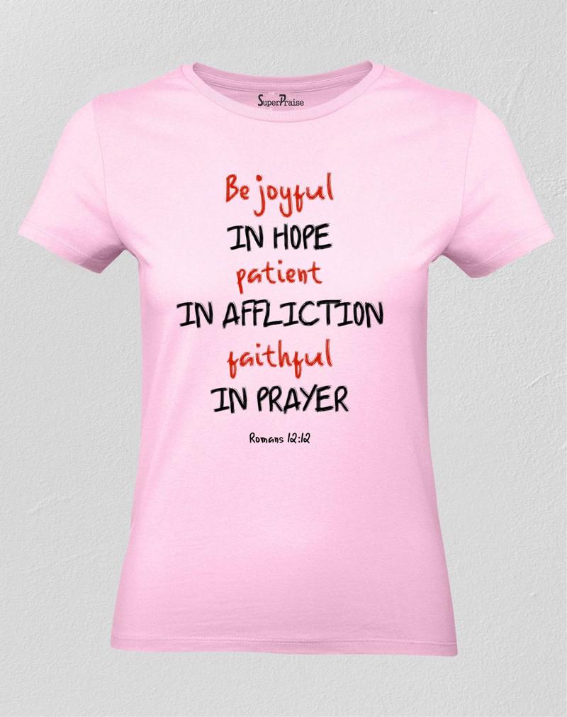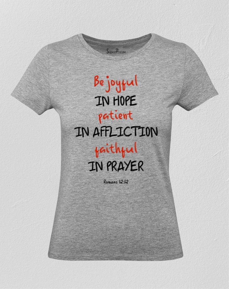 Christian Women T Shirt Be Joyful In Hope Faithful In Prayer Holy