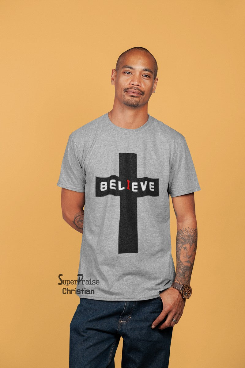 Enhance your wardrobe with our Believe Religious T shirt. Made of high-quality materials, this shirt not only provides comfort but also showcases your faith with its bold design. Wear it with confidence and share your beliefs with the world.