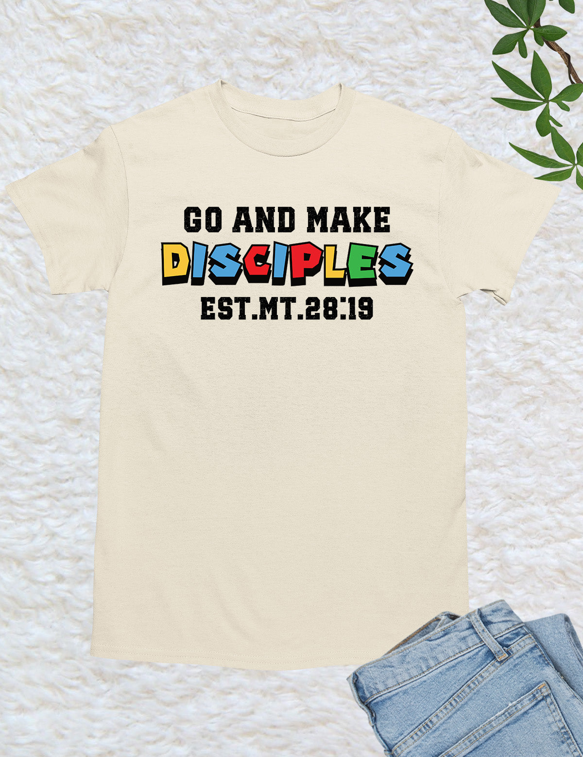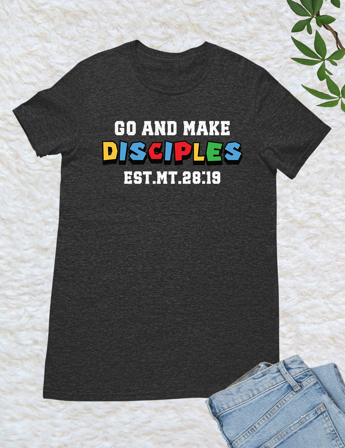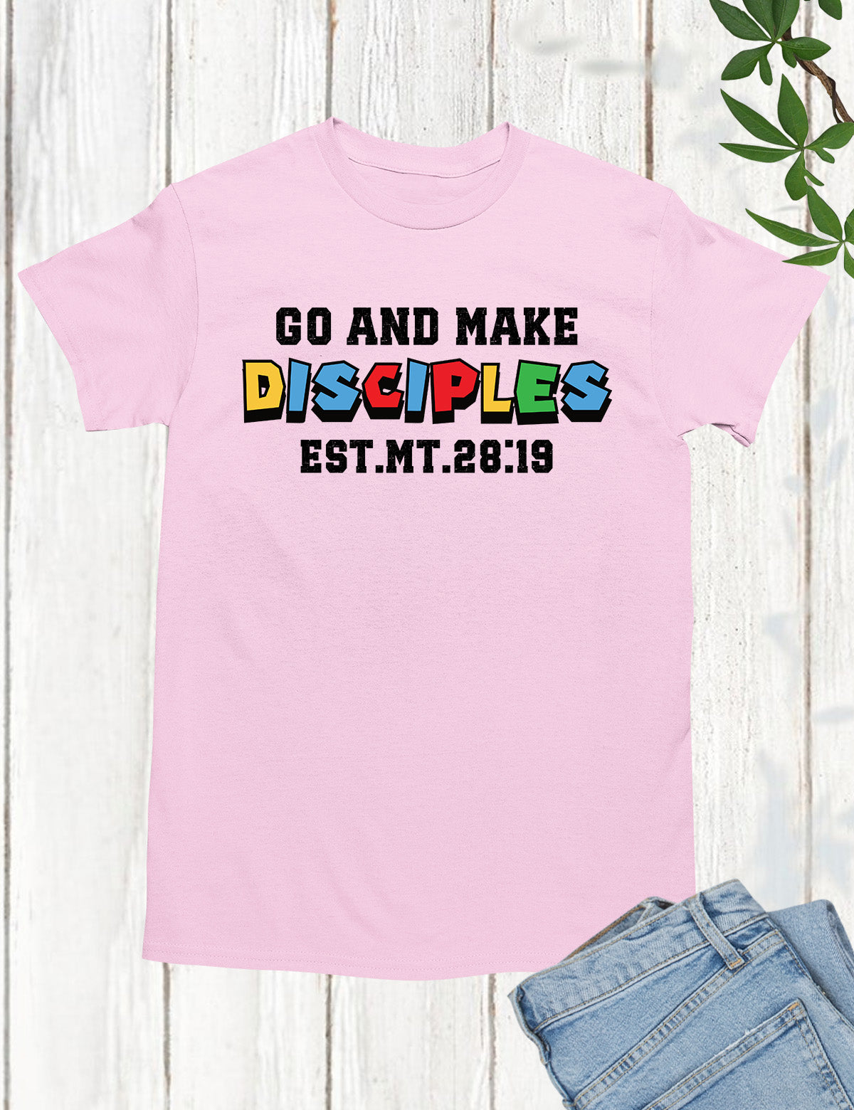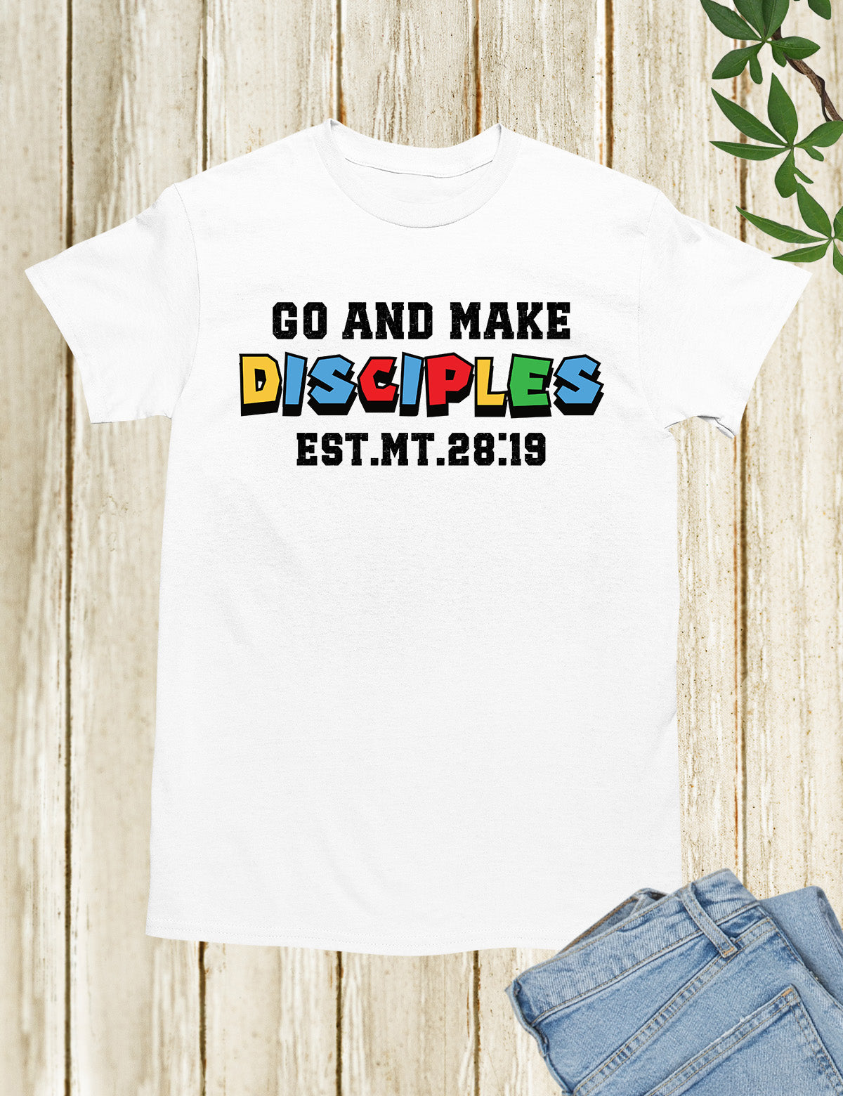 This Bible Verse T Shirt reminds you to "go and make disciples" with its inspiring message. Made with comfortable cotton material and available in multiple sizes, this shirt is perfect for spreading the Good News while looking stylish. Wear it as a reminder to fulfill the Great Commission and share your faith with others.