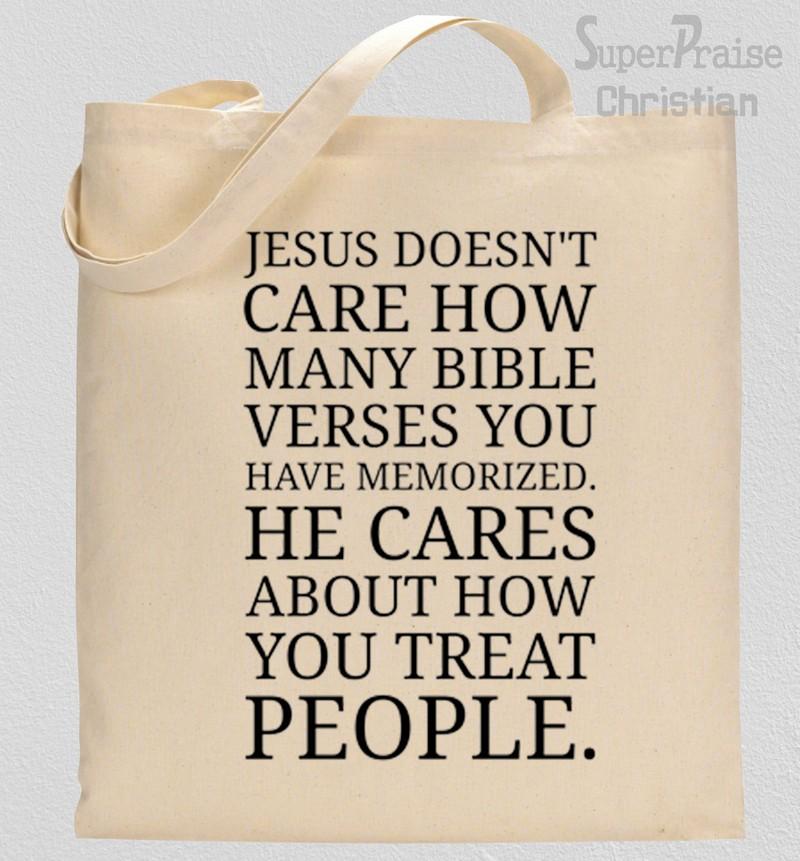 Gospel Tote Bag Jesus Does't Care How Many Bible verses You have Memorized