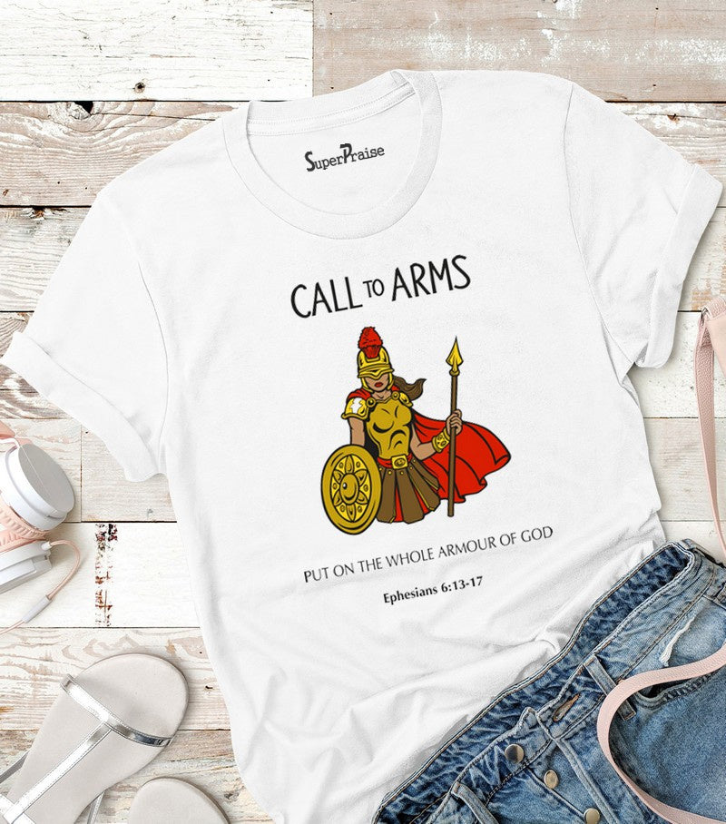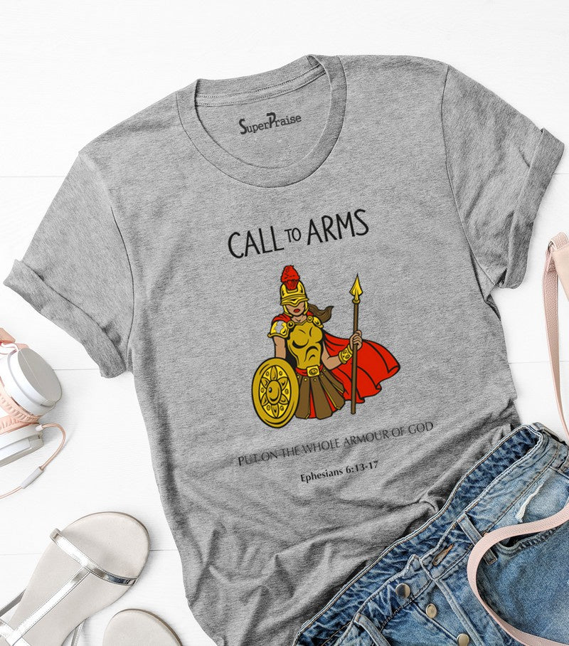 Call to Arms T Shirt is stylish and comfortable to wear while spreading the gospel. This printed bible scripture tee is a way to let people know that you belong to Jesus Christ and proclaim the love of God without saying a word.