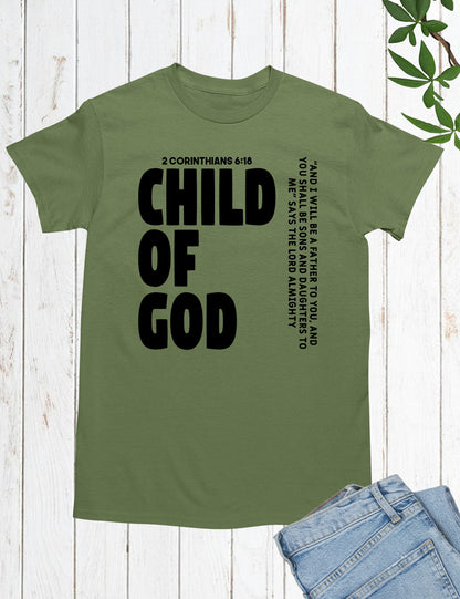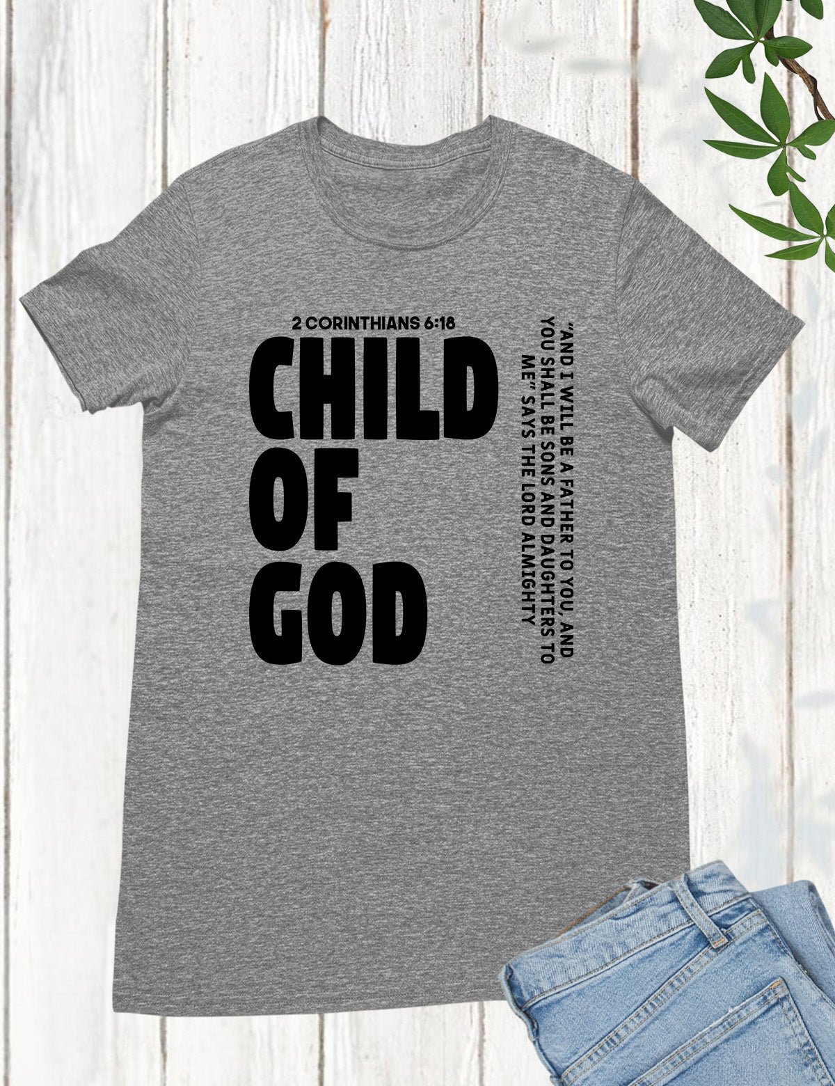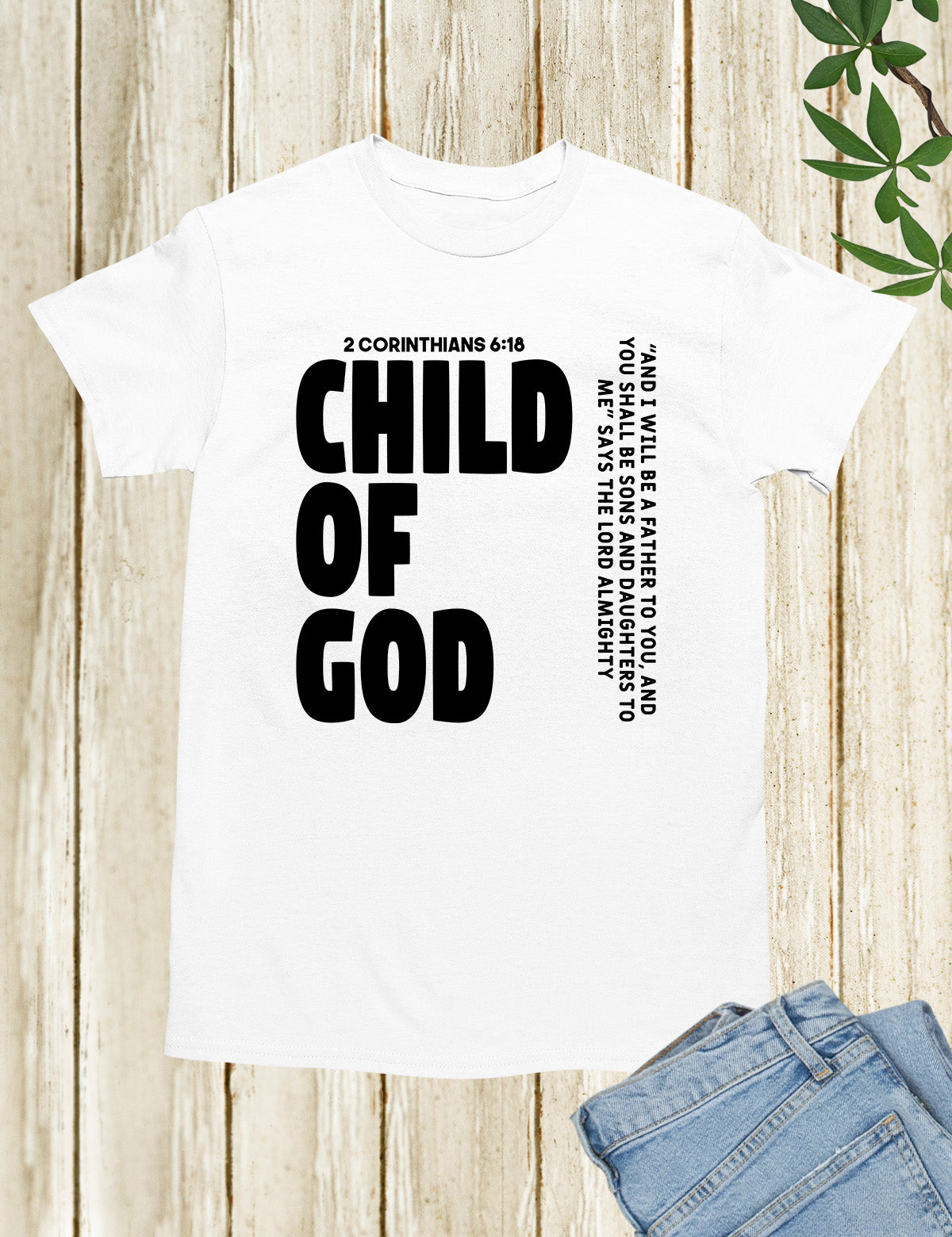 Celebrate your faith with our Child of God Corinthians Bible Verse Shirts. Made from high-quality materials, these shirts are the perfect way to show off your love for God. With the inspiring Corinthians Bible verse printed on the front, these shirts serve as a daily reminder of your identity as a child of God.