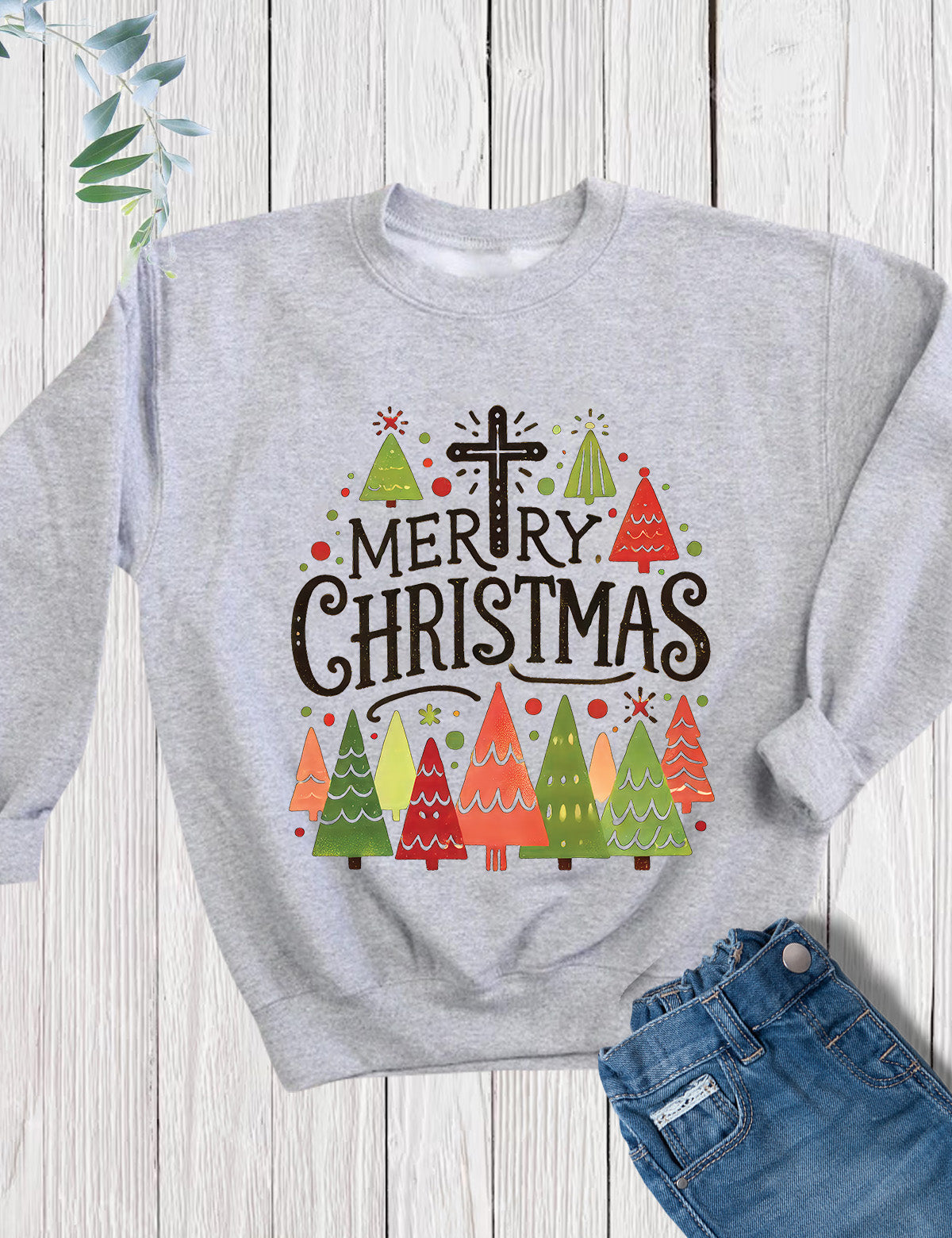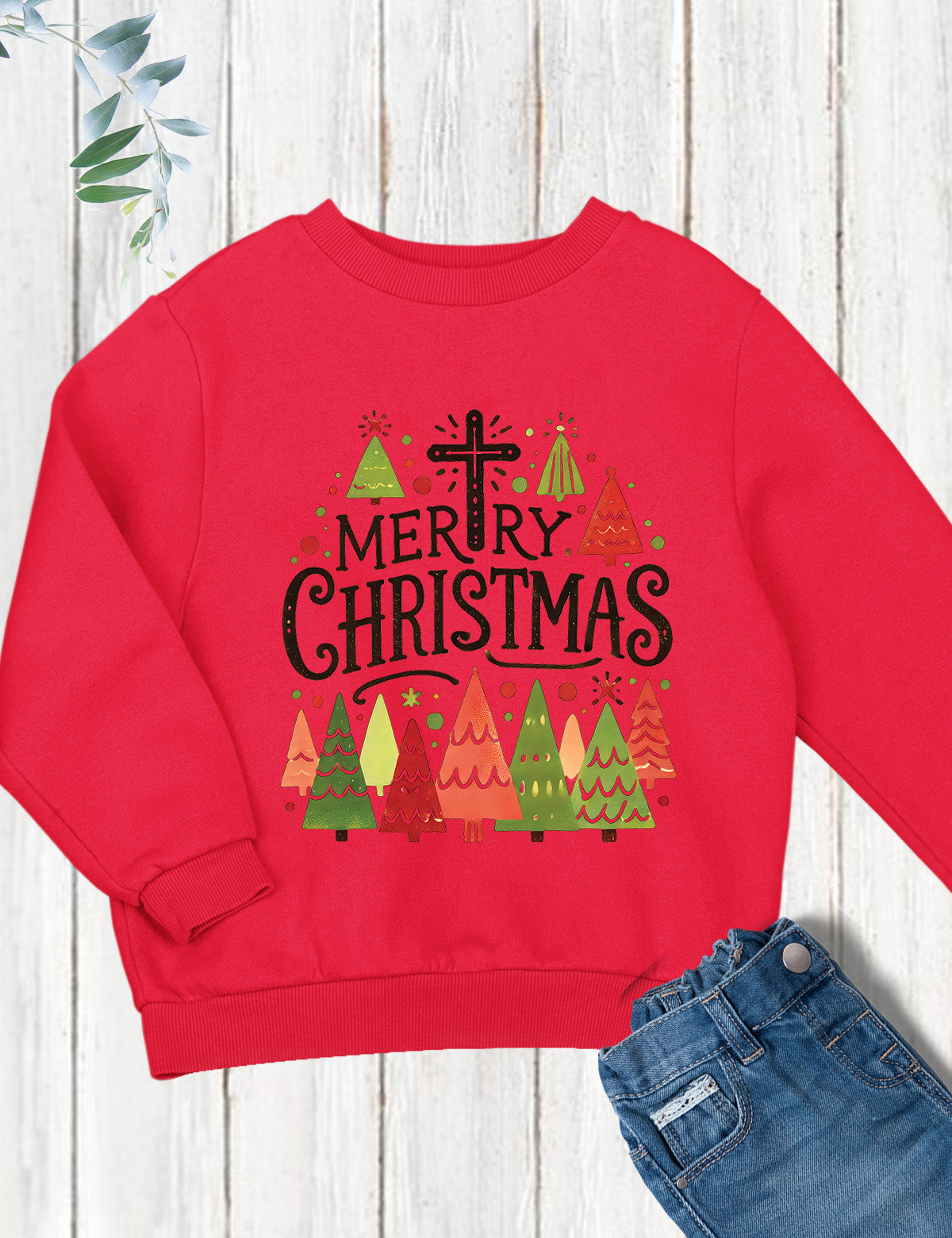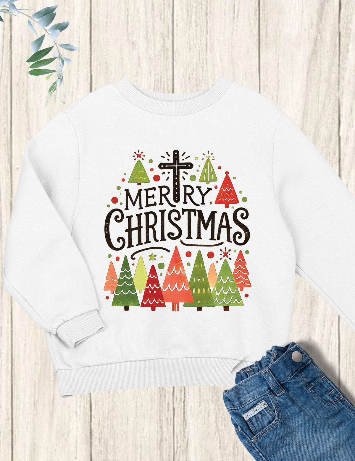 Celebrate the holiday season with our Christian Merry Christmas Kids Sweatshirt. Made with high-quality materials, this sweatshirt showcases a festive design that will spread joy wherever your child goes. Perfect for family gatherings and holiday photos, this sweatshirt is a must-have for every little one this Christmas.