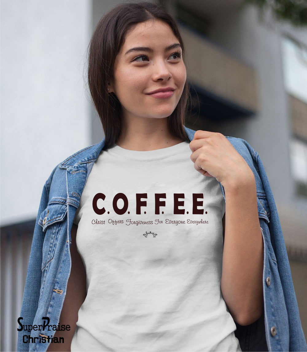 Christian Women T Shirt Coffee Christ Offer Forgiveness For Everyone
