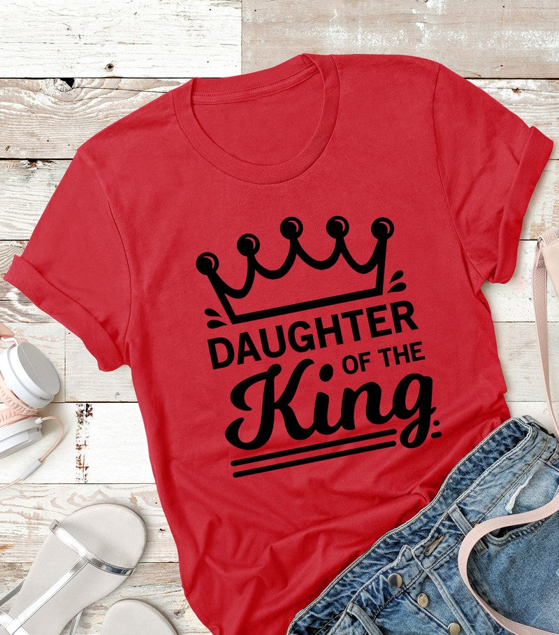 Daughter Of The King T Shirt is stylish and comfortable to wear while spreading the gospel. This printed bible scripture tee is a way to let people know that you belong to Jesus Christ and proclaim the love of God without saying a word.