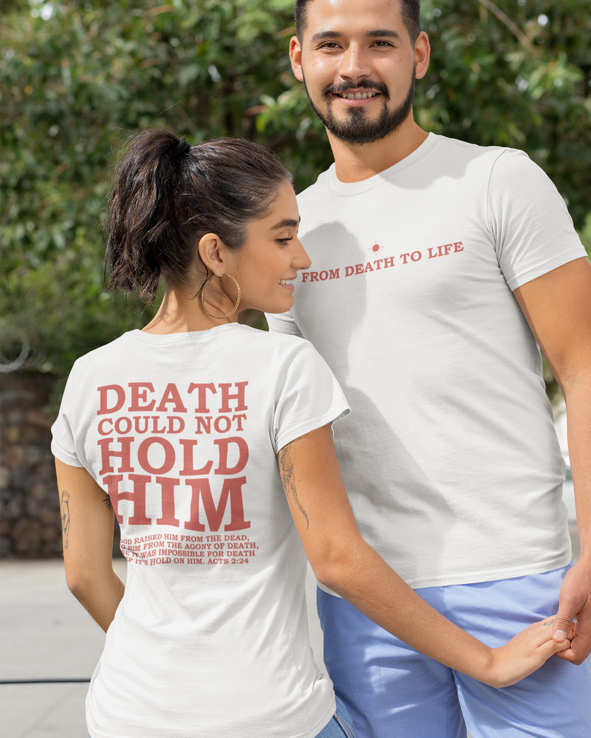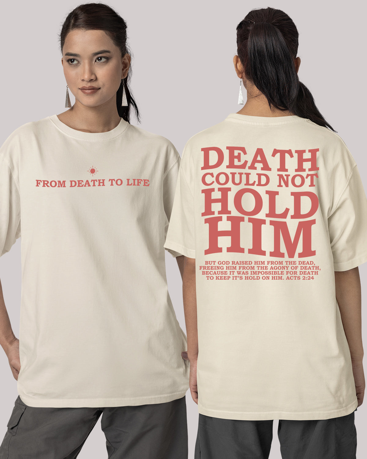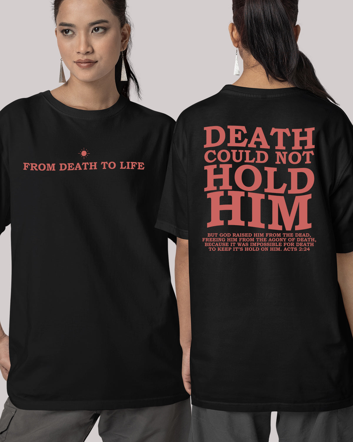 Death Could Not Hold Him Bible Verse From Death To Life Christian Front Back T Shirt
