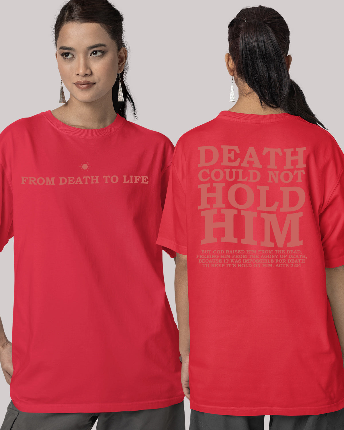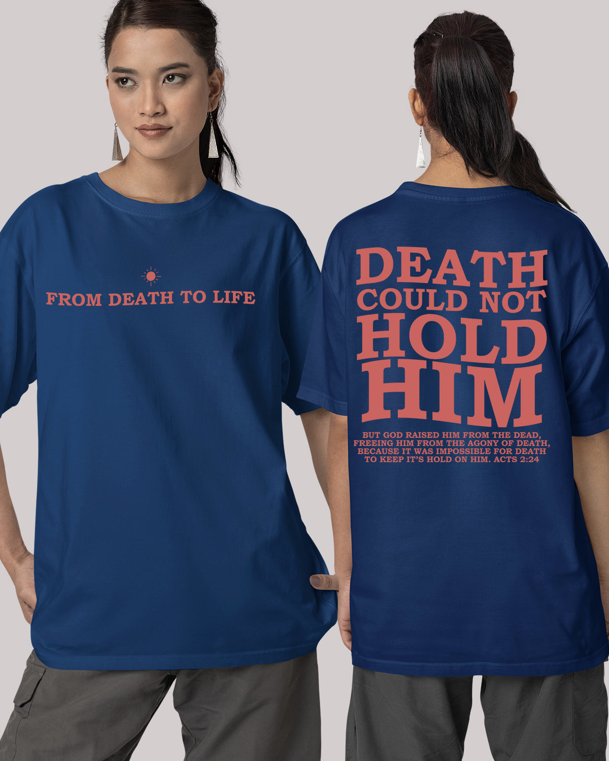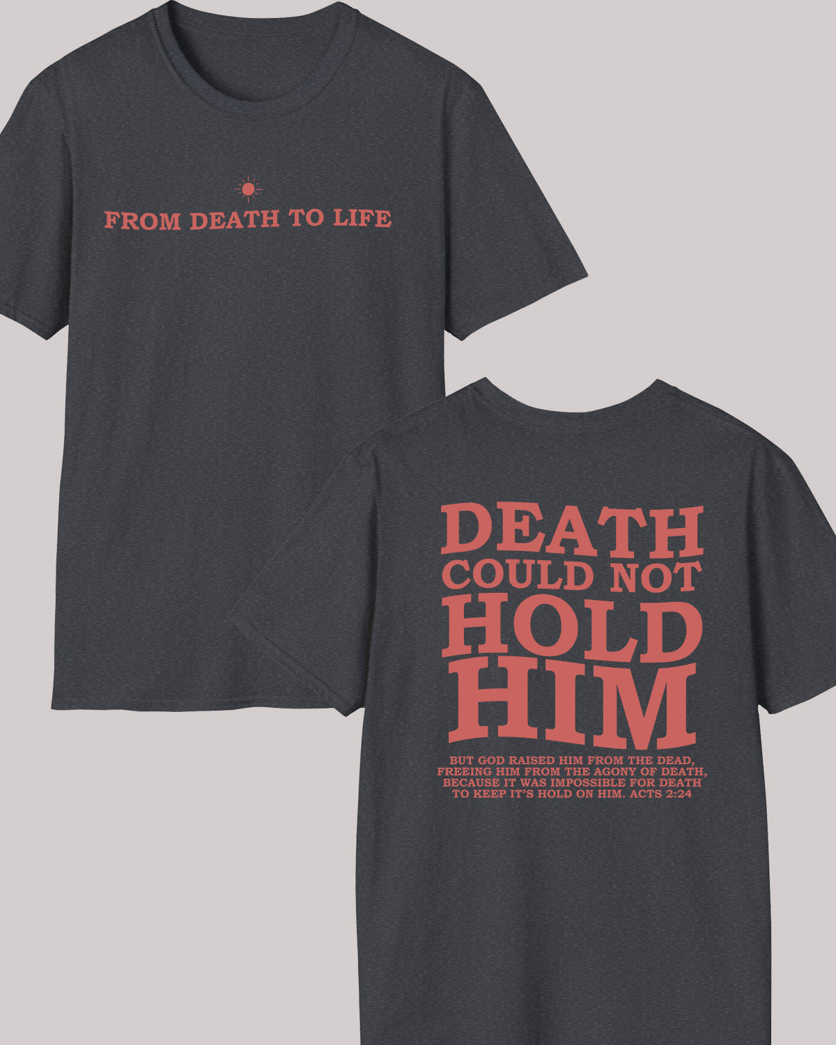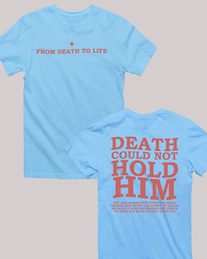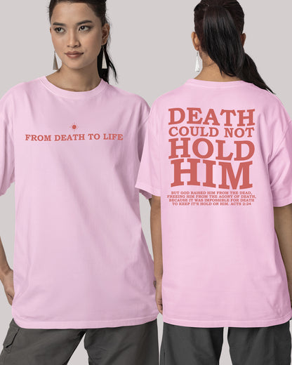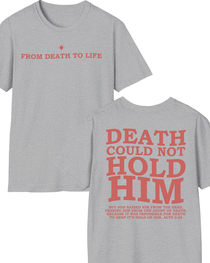 Death Could Not Hold Him Bible Verse From Death To Life Christian Front Back T Shirt