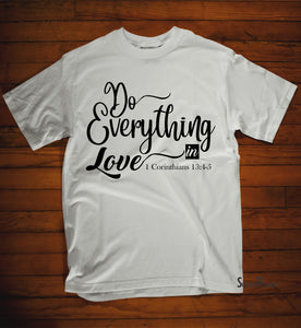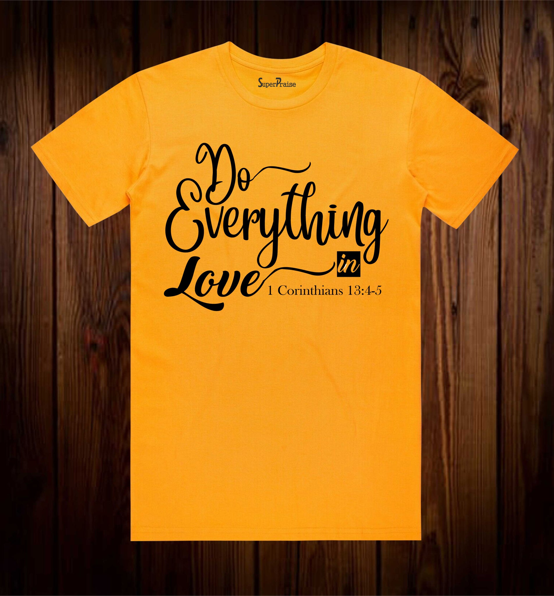 This Do Everything In Love Bible Verse T Shirt showcases a powerful message. Made with soft and comfortable material, it is great for everyday wear or as a statement piece. Wear it as a reminder to approach everything with love and kindness.