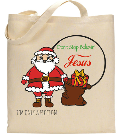 Don't Stop Believing Jesus Santa Claus Christian Tote Bag