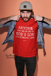 Experience eternal life with this John 3:36 t-shirt. Made of comfortable, durable fabric, this shirt features a powerful Bible verse reminding you of the ultimate gift. Wear it proudly to share your faith and inspire others to join the journey of eternal life.