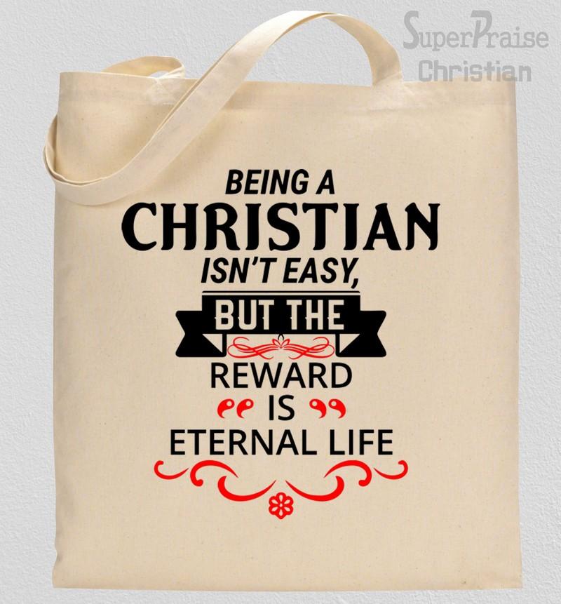 Christian Tote Bag Being A Christian isn't Easy, But The reward is Eternal Life