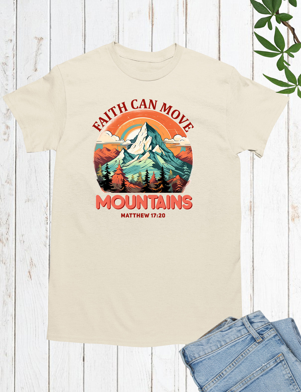Harness the power of your faith with our Faith Can Move Mountains Shirt. Featuring a powerful and inspiring message from the Bible, this tee reminds us that with faith, anything is possible. Made with high-quality materials, this shirt will keep you comfortable while spreading a meaningful message.