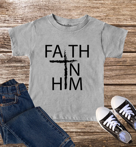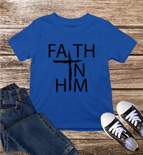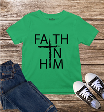 Faith in Him Kids T Shirt is cool stylish and comfy to wear while proclaiming the gospel of Christ. This Christian children t shirts come in unisex style for boys and girls.