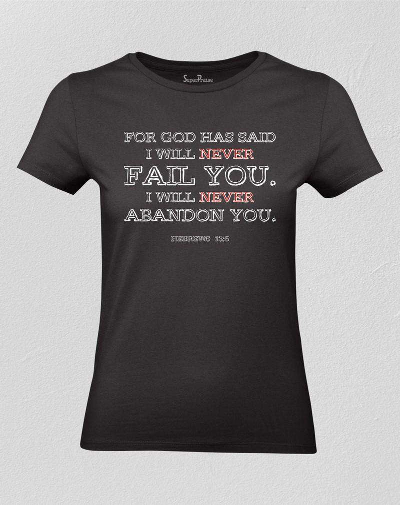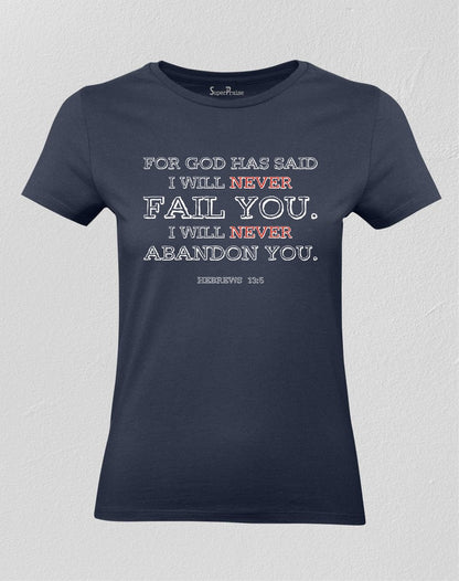 Christian Women T shirt For God Has Said I will Never Fail or Abandon You"