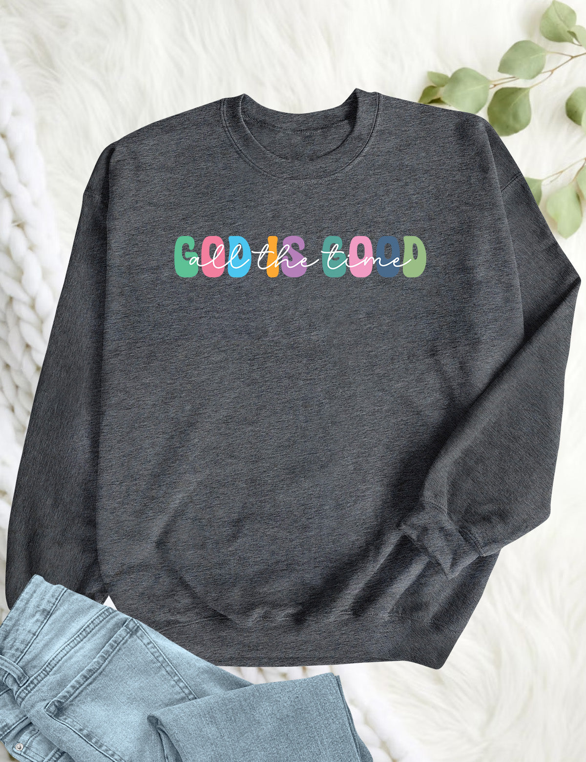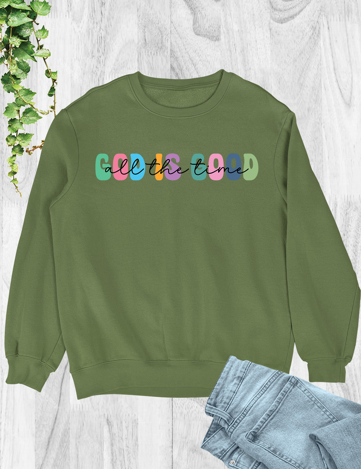 Stay warm and stylish with our God is Good all The Time Christian Sweatshirt Apparel. Show your faith with this comfortable sweatshirt, perfect for any occasion. Made with high-quality materials and a timeless design, this apparel is a must-have for any Christian.