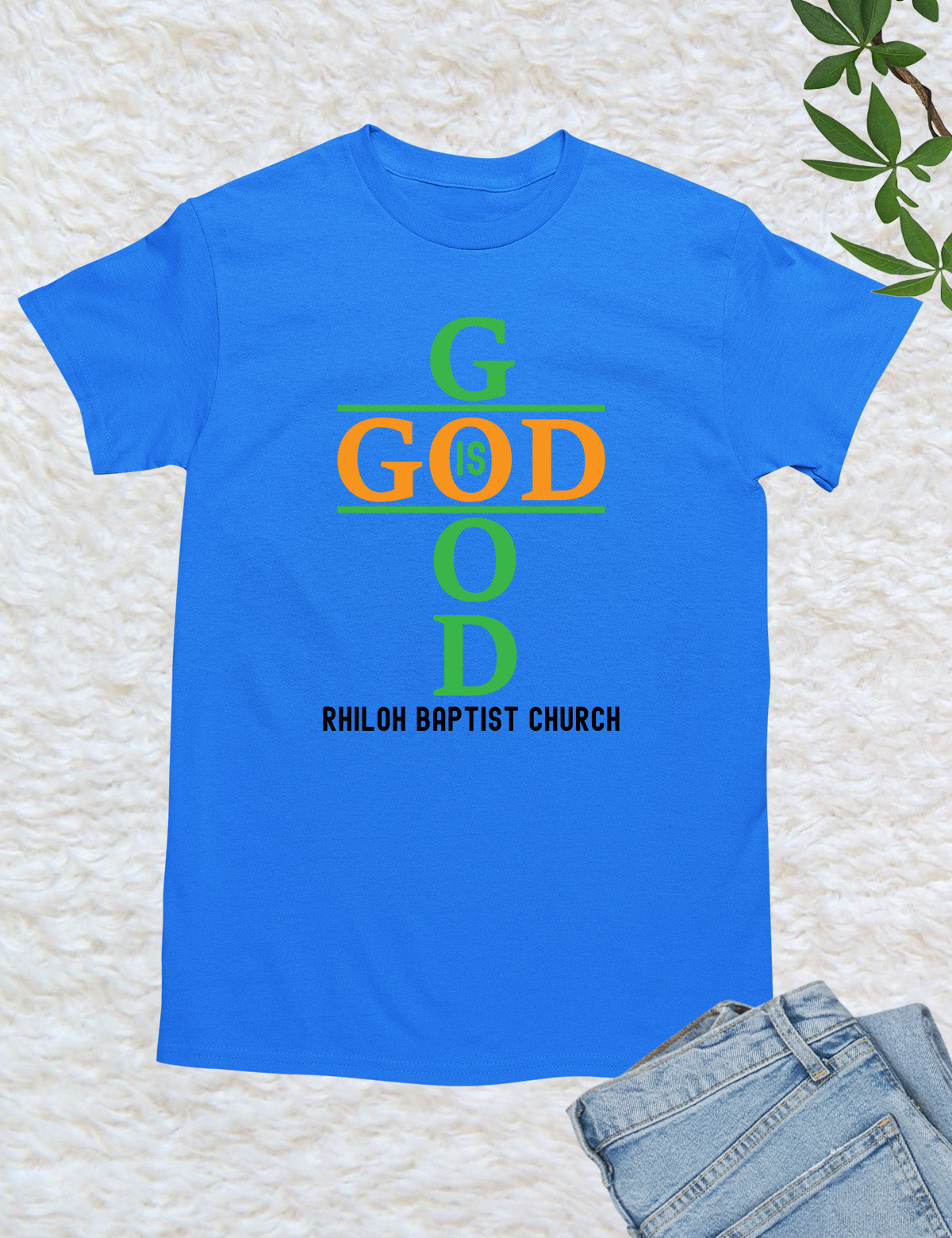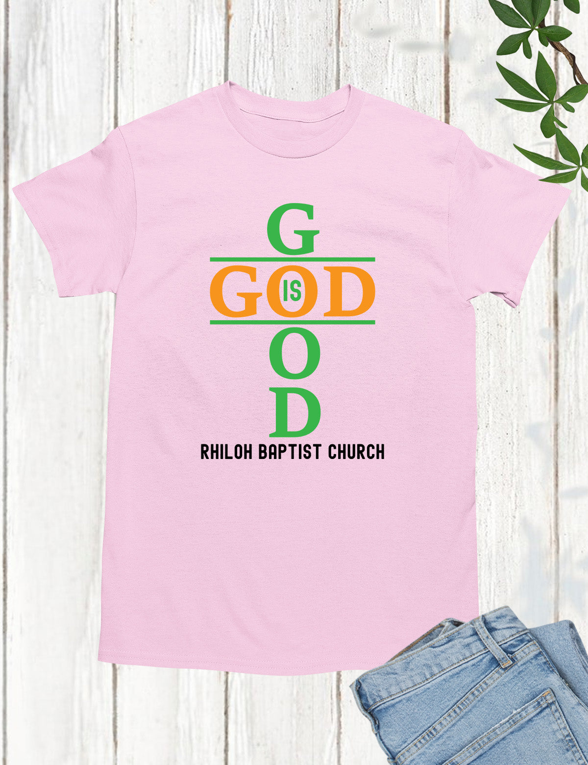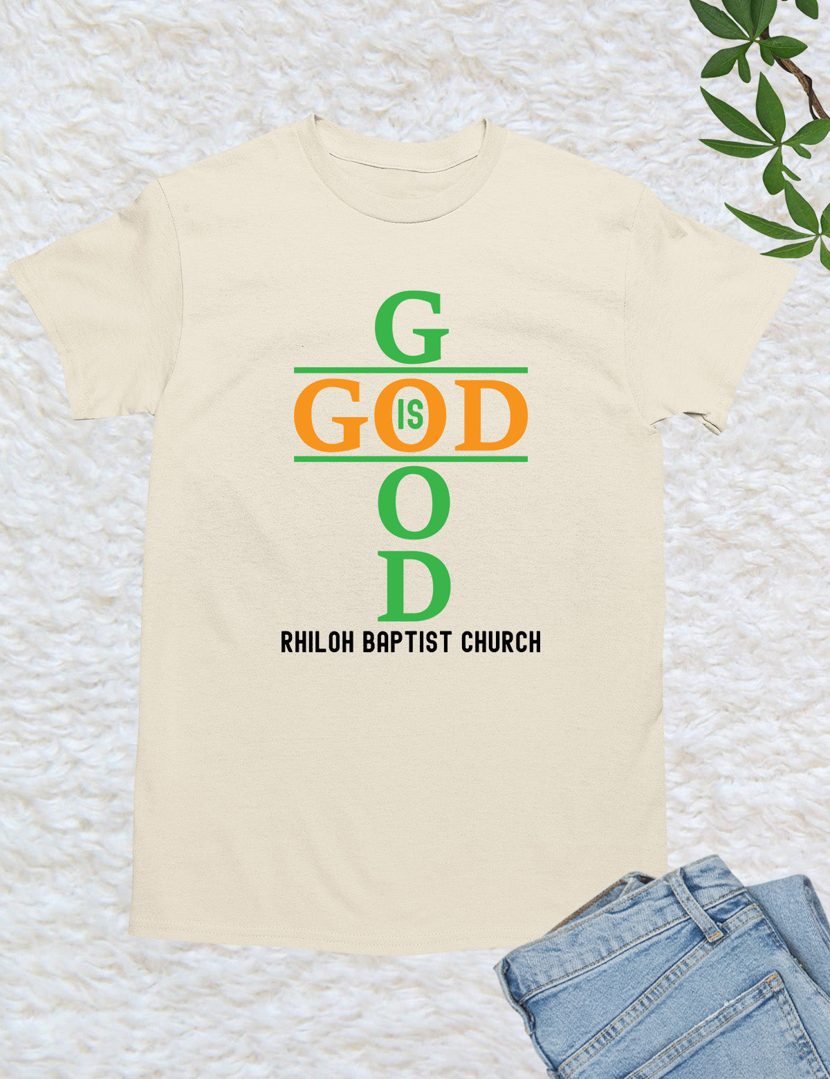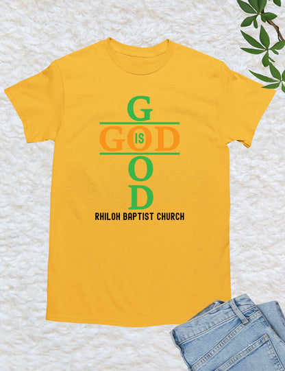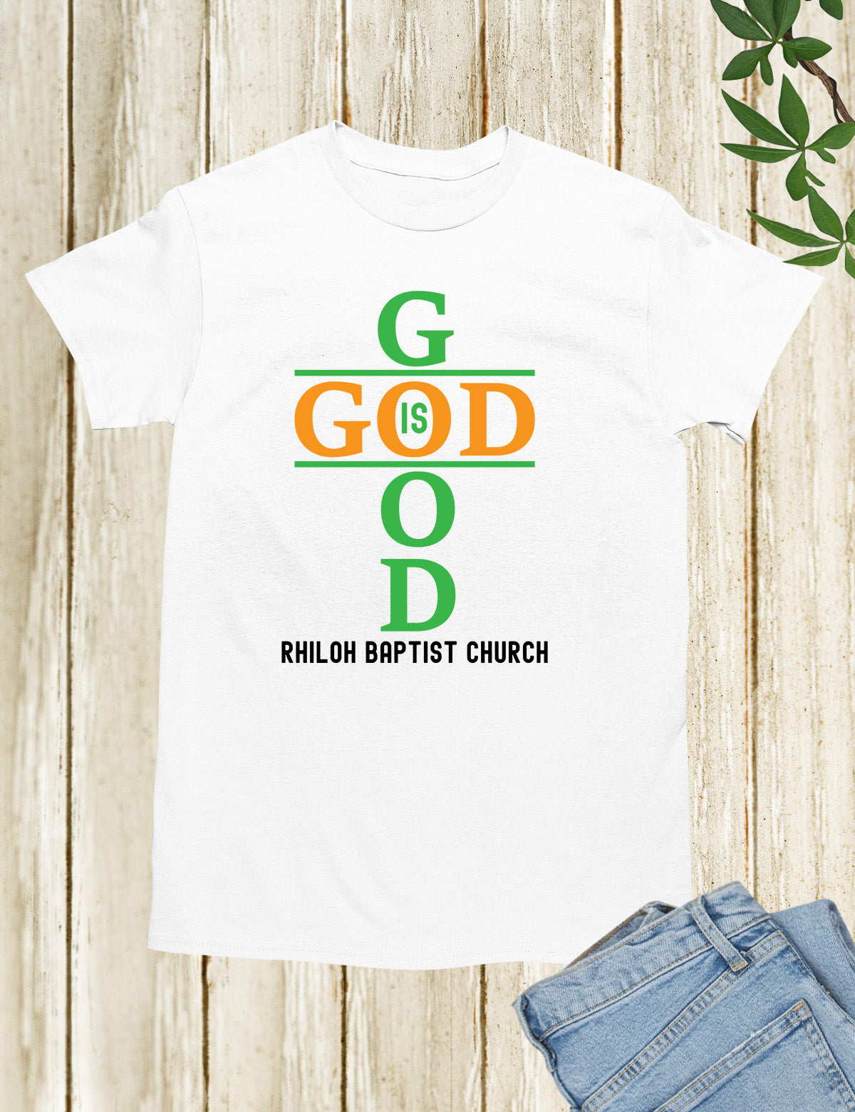This personalized t-shirt lets you confidently show your faith in style. Made with a soft and comfortable fabric, it sports the inspiring message "God is Good" in bold lettering. Available in various sizes and colors, this shirt is perfect for representing your church and spreading positivity.