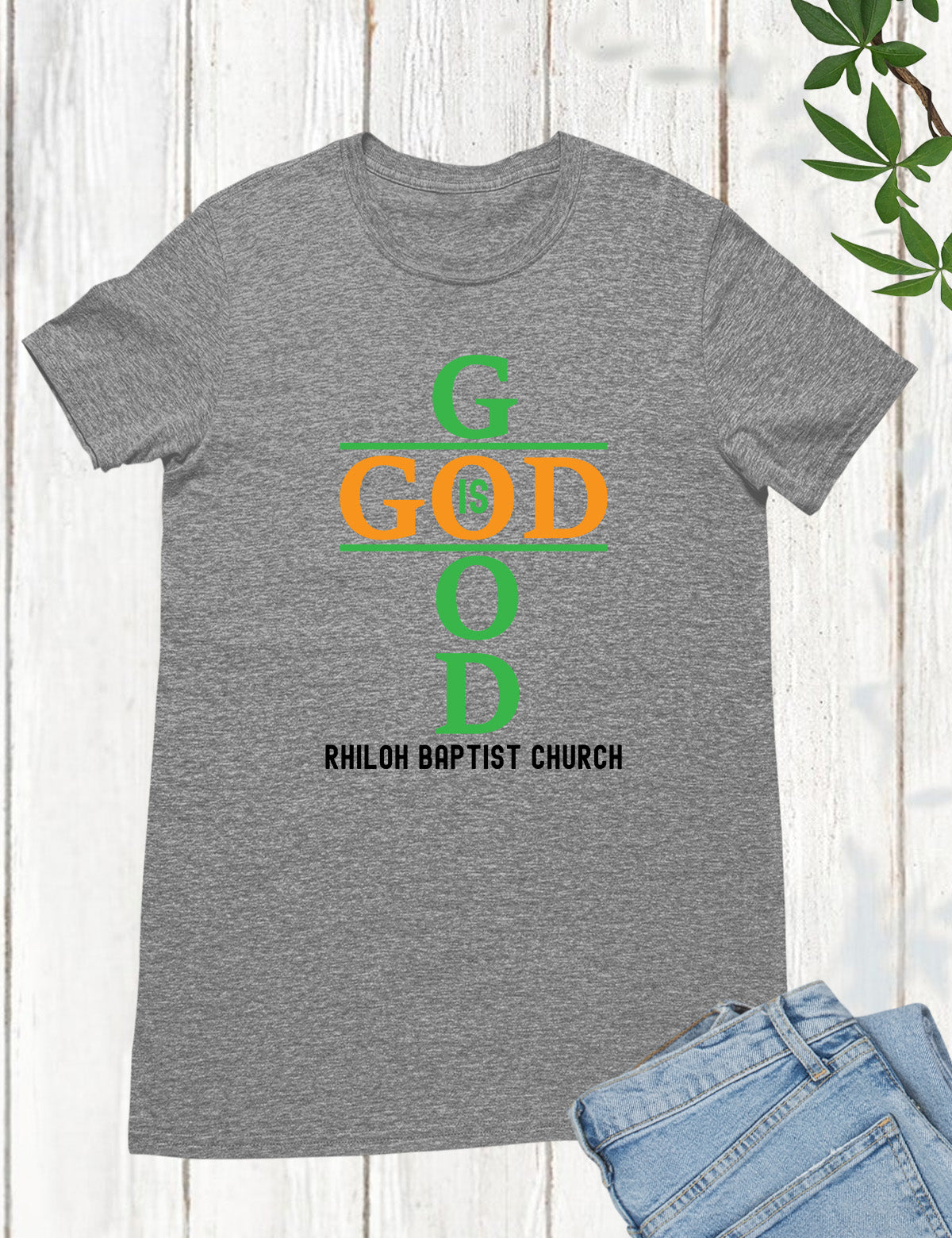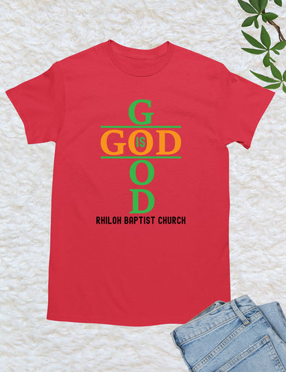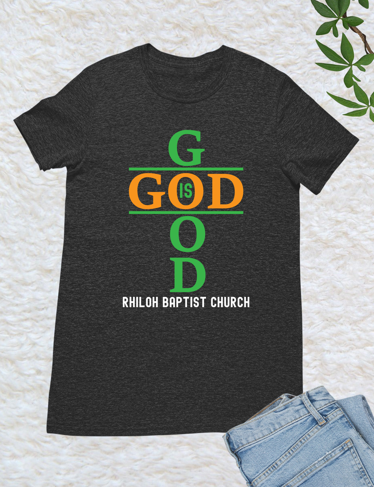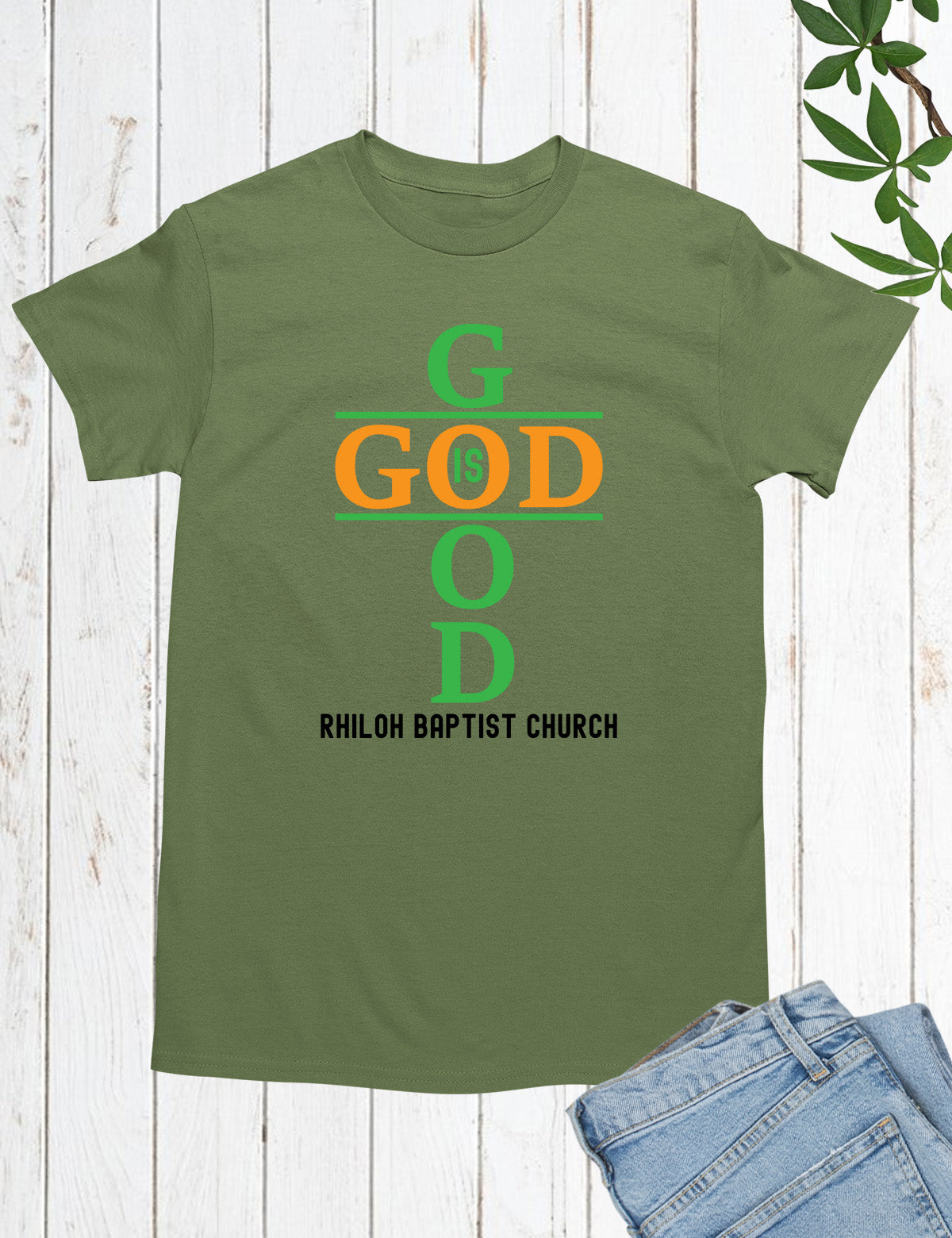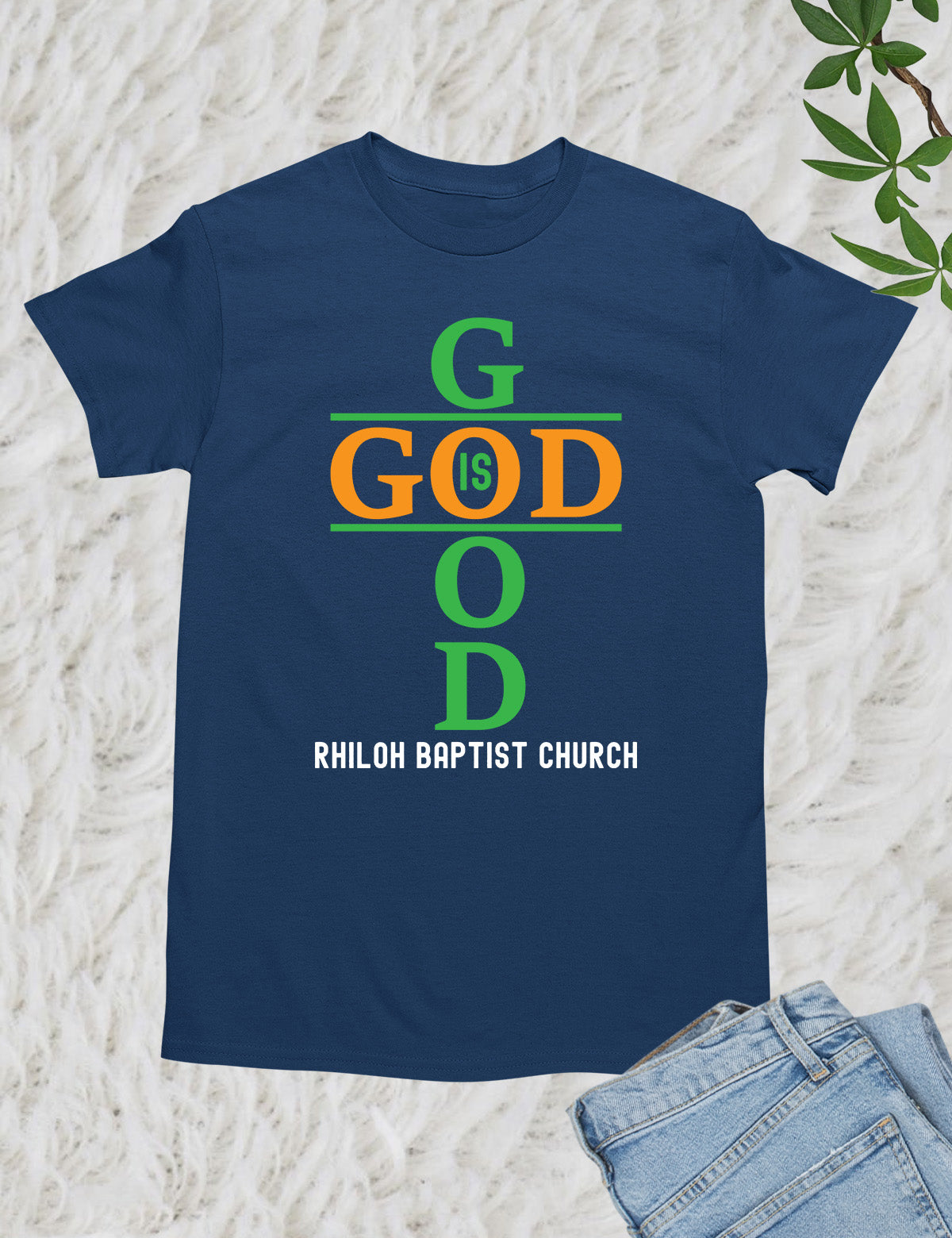 This personalized t-shirt lets you confidently show your faith in style. Made with a soft and comfortable fabric, it sports the inspiring message "God is Good" in bold lettering. Available in various sizes and colors, this shirt is perfect for representing your church and spreading positivity.