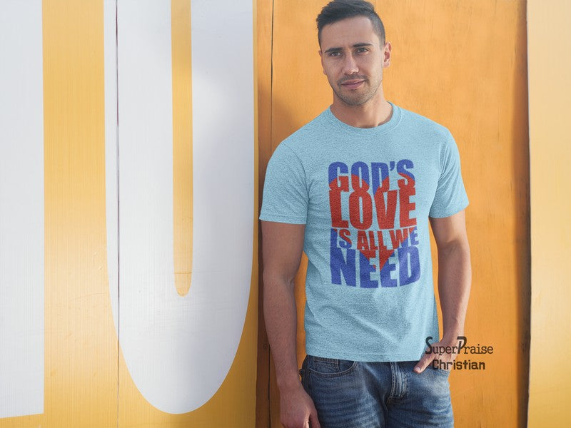This T-shirt serves as a reminder that love and faith in God is all we need. Made with high-quality material, it offers both comfort and style. Embrace its powerful message and spread love wherever you go. Let this shirt be a tangible expression of your belief in God's love.
