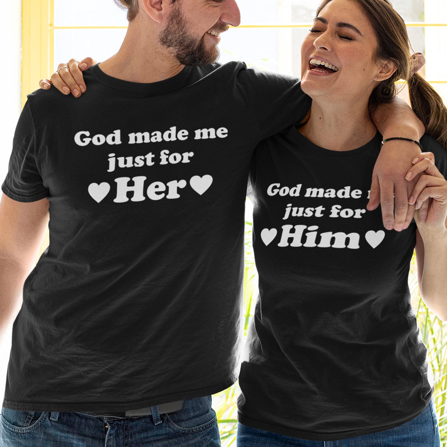 God Made Me Just For Her and Him Matching Wedding T Shirt
