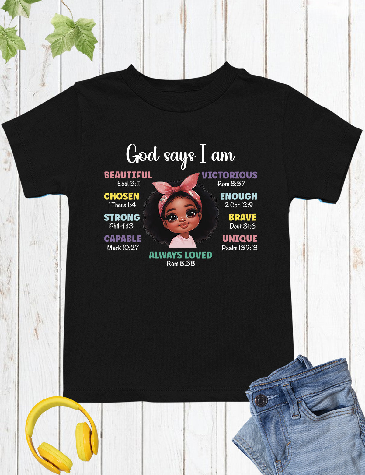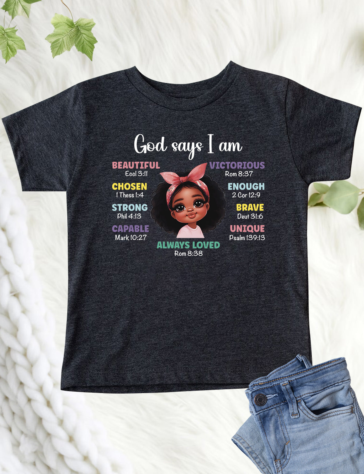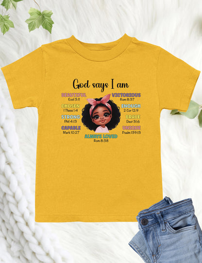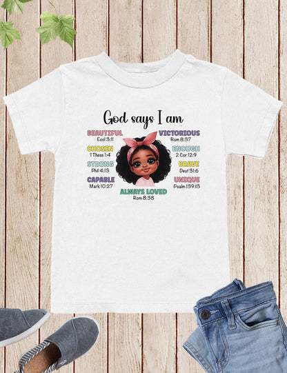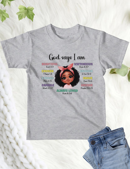 God Says I am Beautiful Chosen Strong Loved Kids Tee