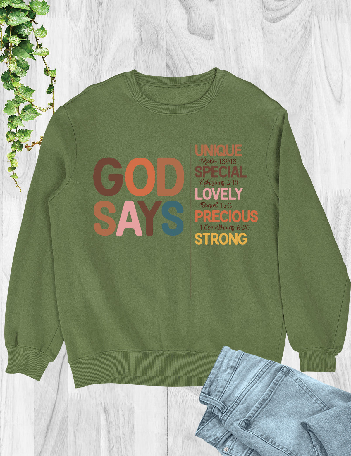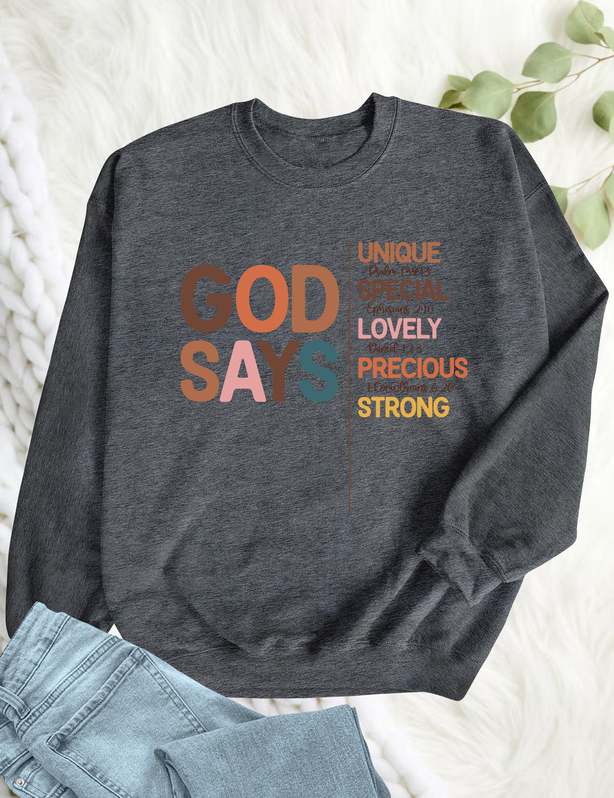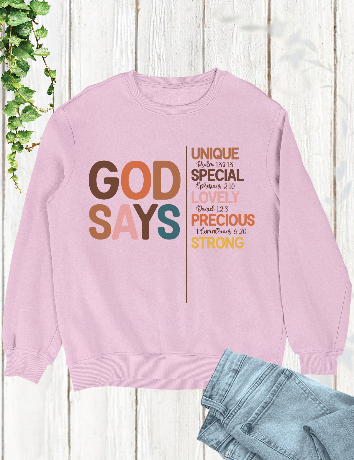 Celebrate Thanksgiving with this divine sweatshirt featuring the message "God says thank you." Made with quality materials for a comfortable fit, spread love and gratitude this holiday season. Perfect for family gatherings or casual wear, let this sweatshirt remind you of the true meaning of Thanksgiving.