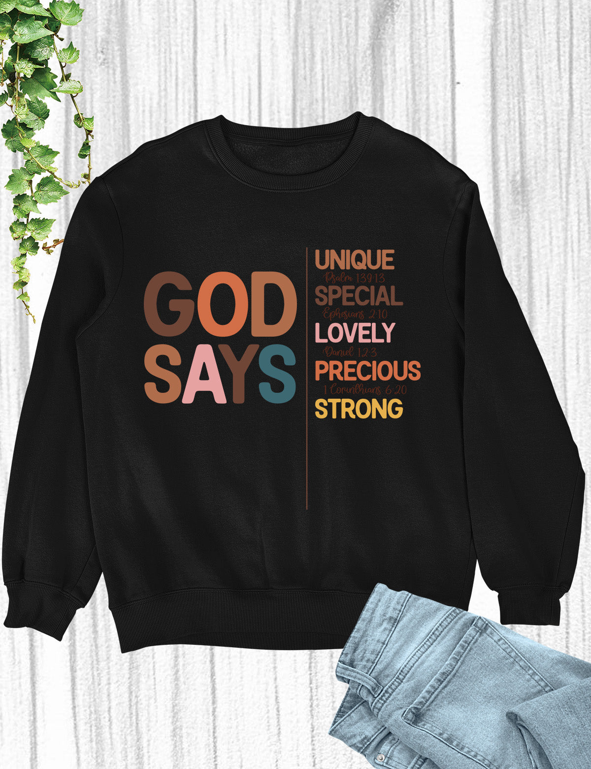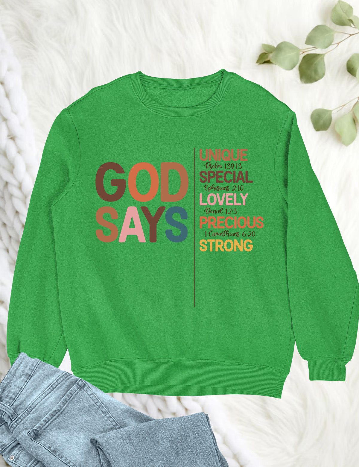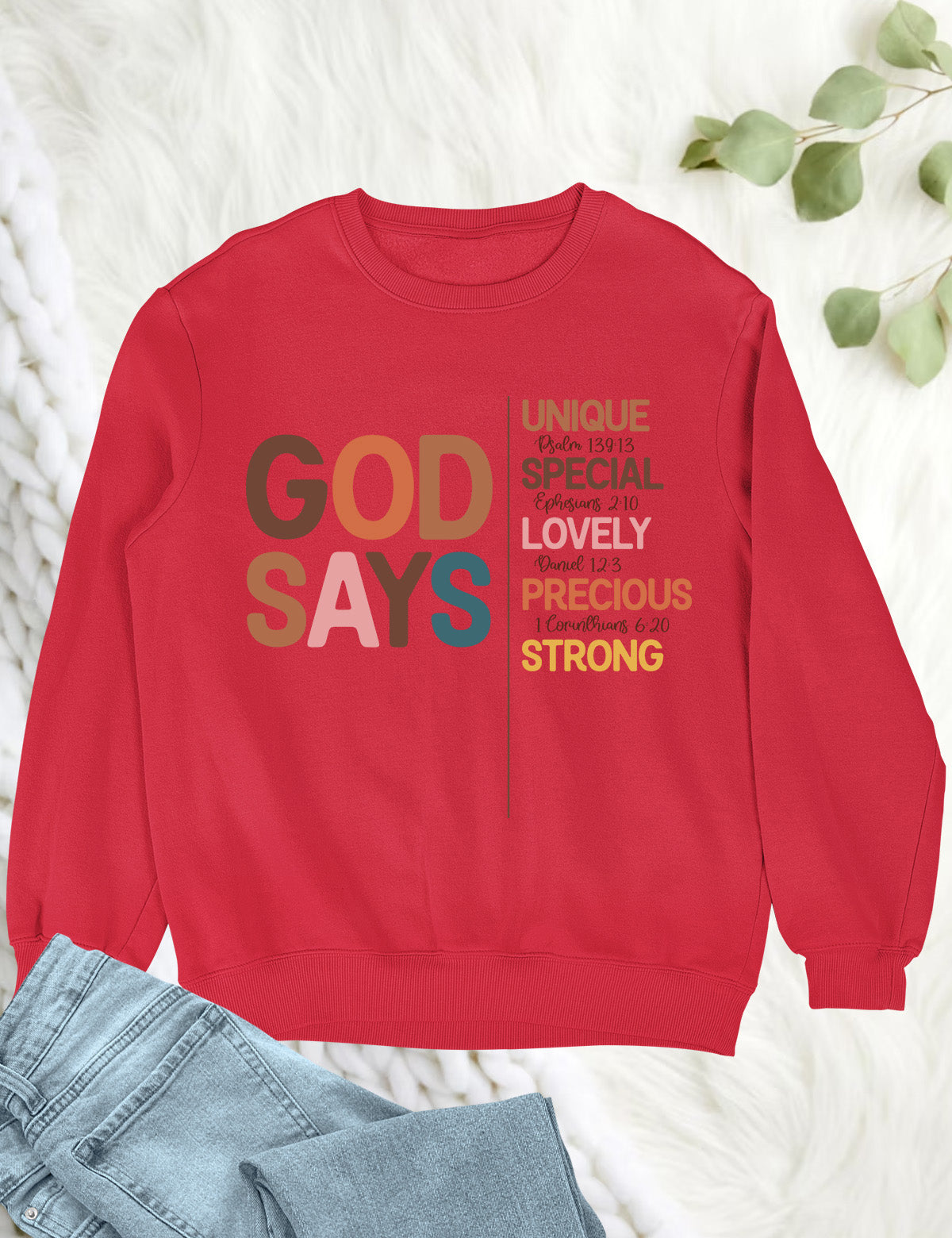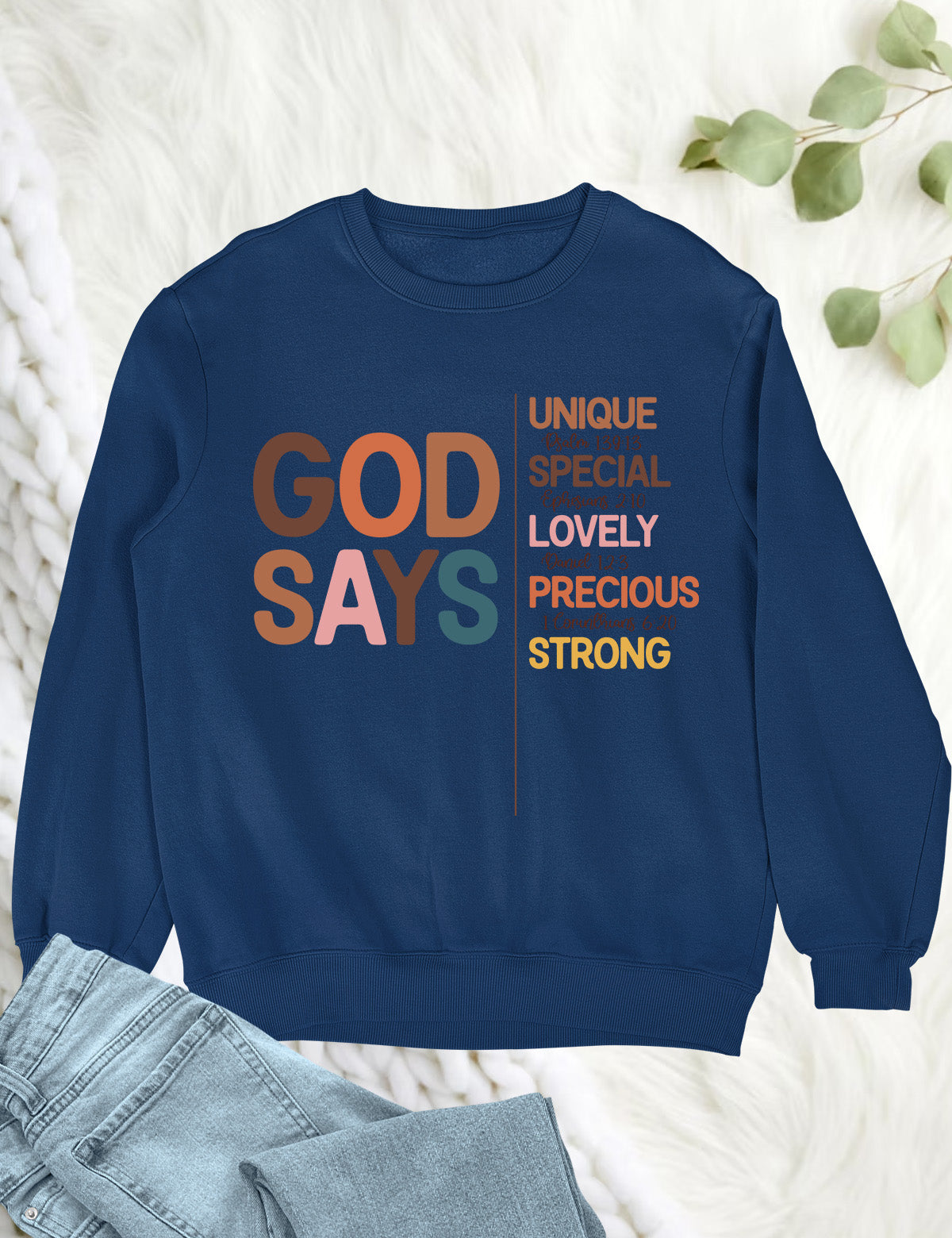 Celebrate Thanksgiving with this divine sweatshirt featuring the message "God says thank you." Made with quality materials for a comfortable fit, spread love and gratitude this holiday season. Perfect for family gatherings or casual wear, let this sweatshirt remind you of the true meaning of Thanksgiving.