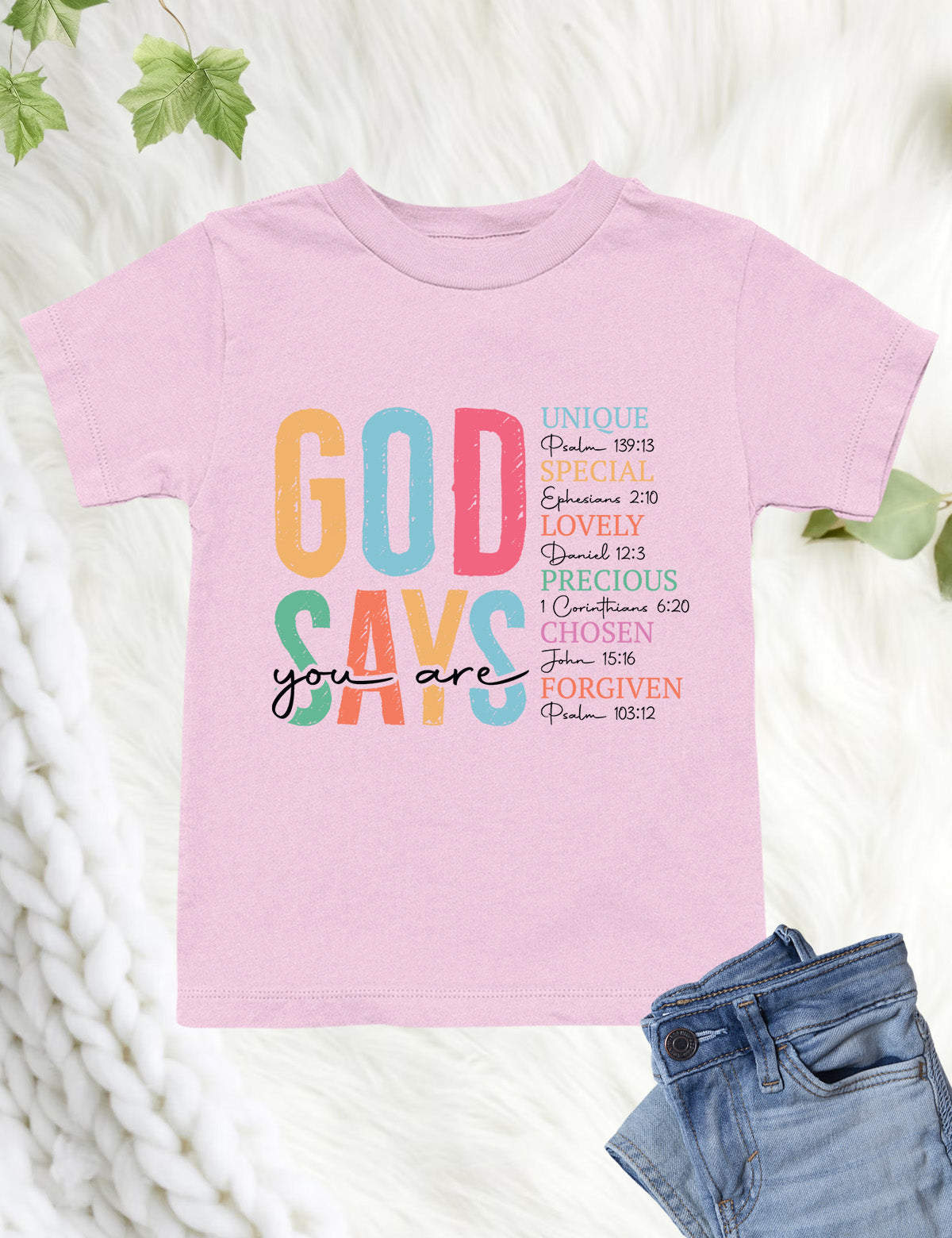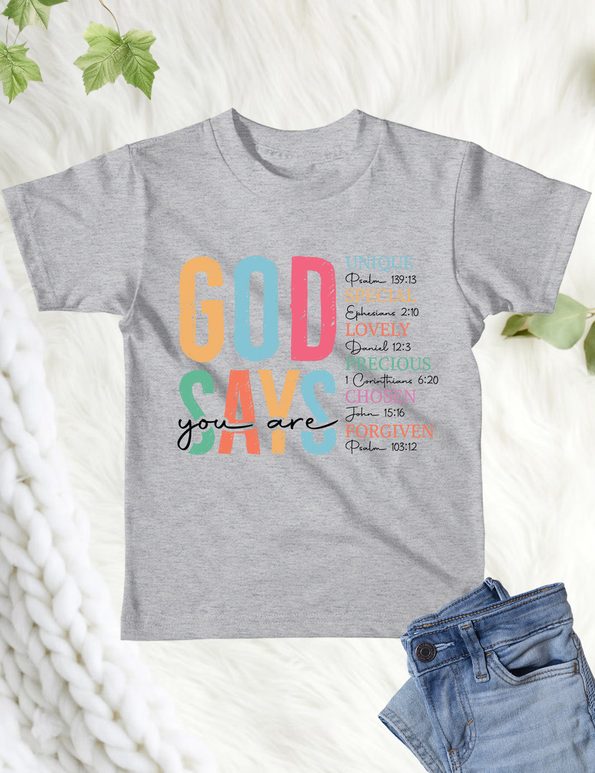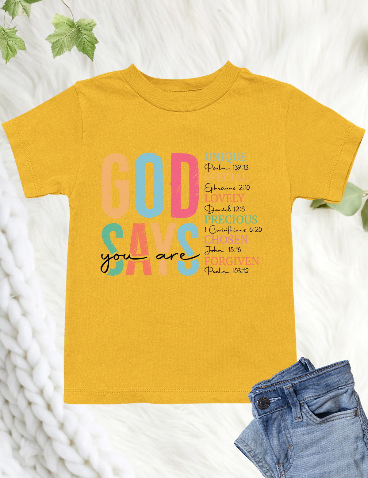 This God Says You Are Boho Christian Kids T Shirt is a meaningful and stylish addition to any child's wardrobe. Featuring a powerful message of love and acceptance, it reminds kids of their worth and identity in God. Made with soft and durable materials, it offers both comfort and style for everyday wear. Show your child's faith and fashion sense with this one-of-a-kind t-shirt.