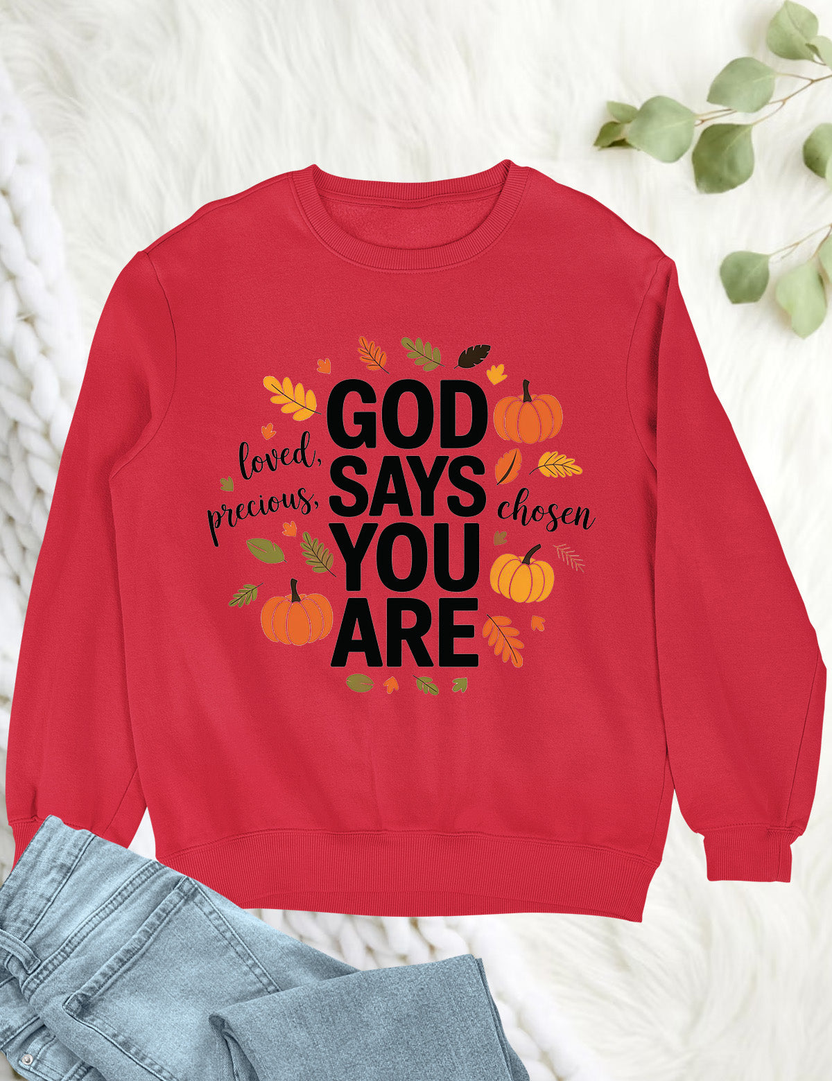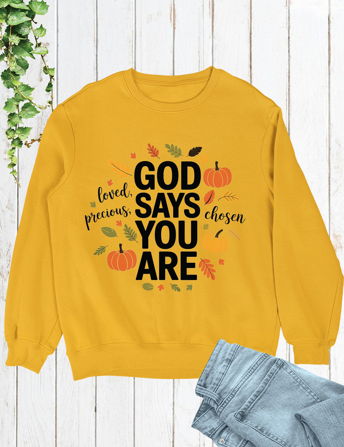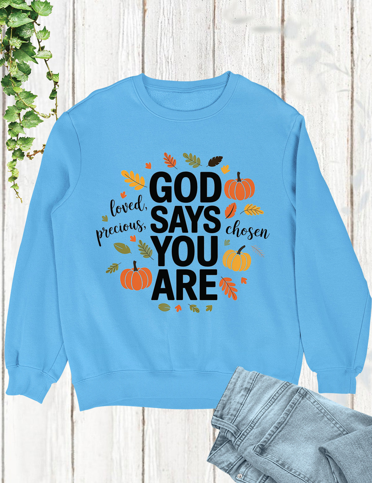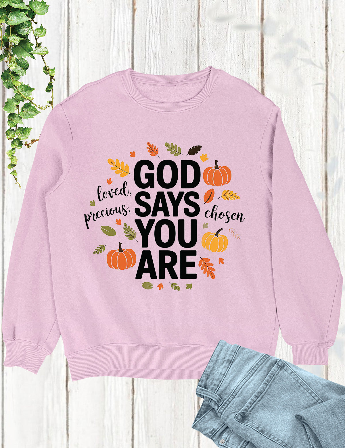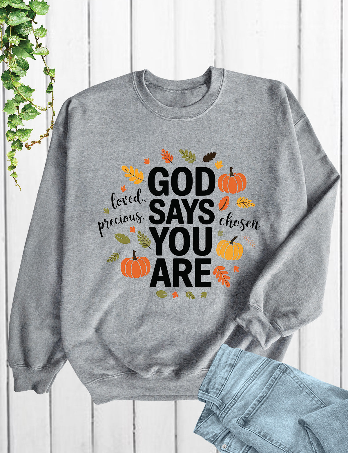Stay thankful and stylish with the God Says You Are Thanksful Sweatshirt. This soft and cozy sweatshirt is a reminder of God's love and gratitude towards you. Made with quality material, it's perfect for staying warm and comfortable during colder days. Show your appreciation with this one-of-a-kind sweatshirt.