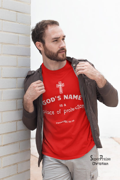 This exclusive T-shirt features the powerful and sacred name of God, providing divine protection wherever you go. Made with high-quality fabric and an expertly crafted design, this shirt is perfect for showing your devotion and faith. Experience the ultimate form of protection with our Gods Name Place of Protection T-shirt.