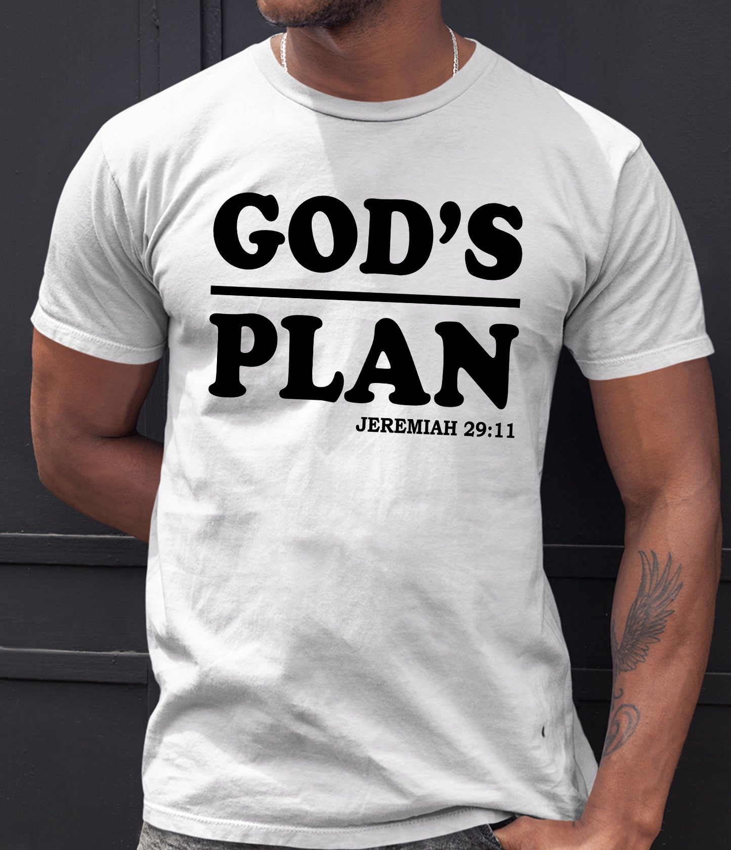 Introducing the Gods Plan T-Shirt, crafted with quality materials for comfort and style. Show your belief in a higher power with this unique design. Made for those who desire to spread positivity and confidence, this shirt is perfect for any occasion. Join the movement and wear your faith with pride.