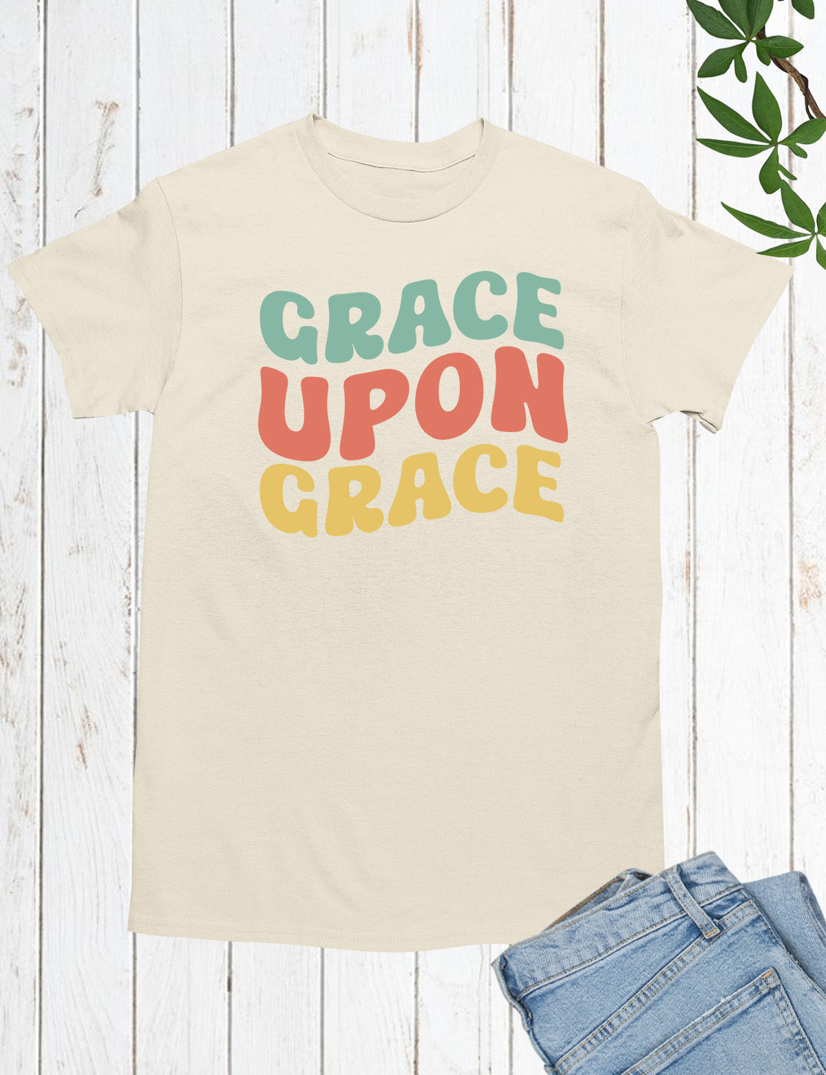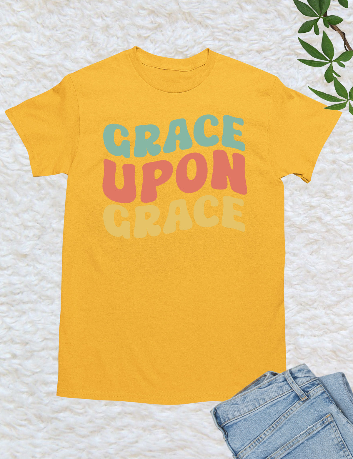 This Grace Upon Grace Christian Shirt is the perfect addition to your wardrobe. With its simple yet powerful design, it serves as a reminder of the boundless grace we receive through our faith. Made from quality materials, this shirt provides both comfort and style. Embrace your faith with this shirt today.
