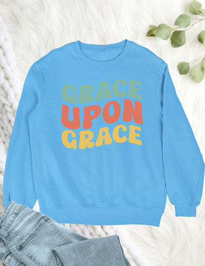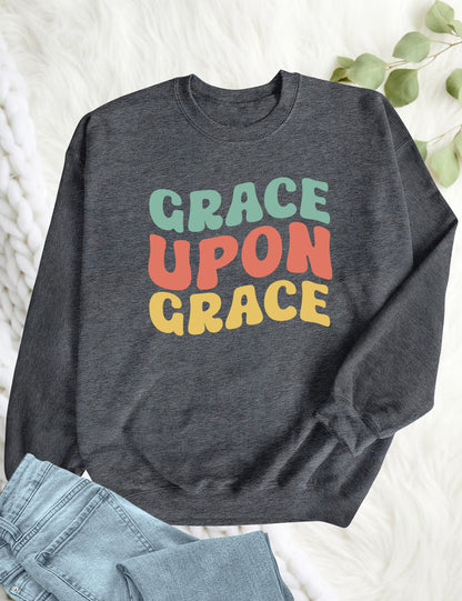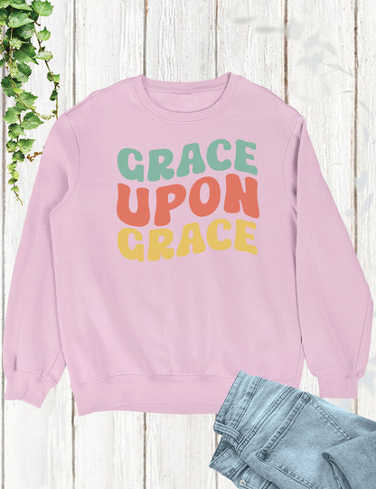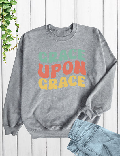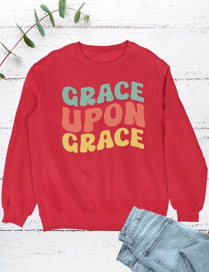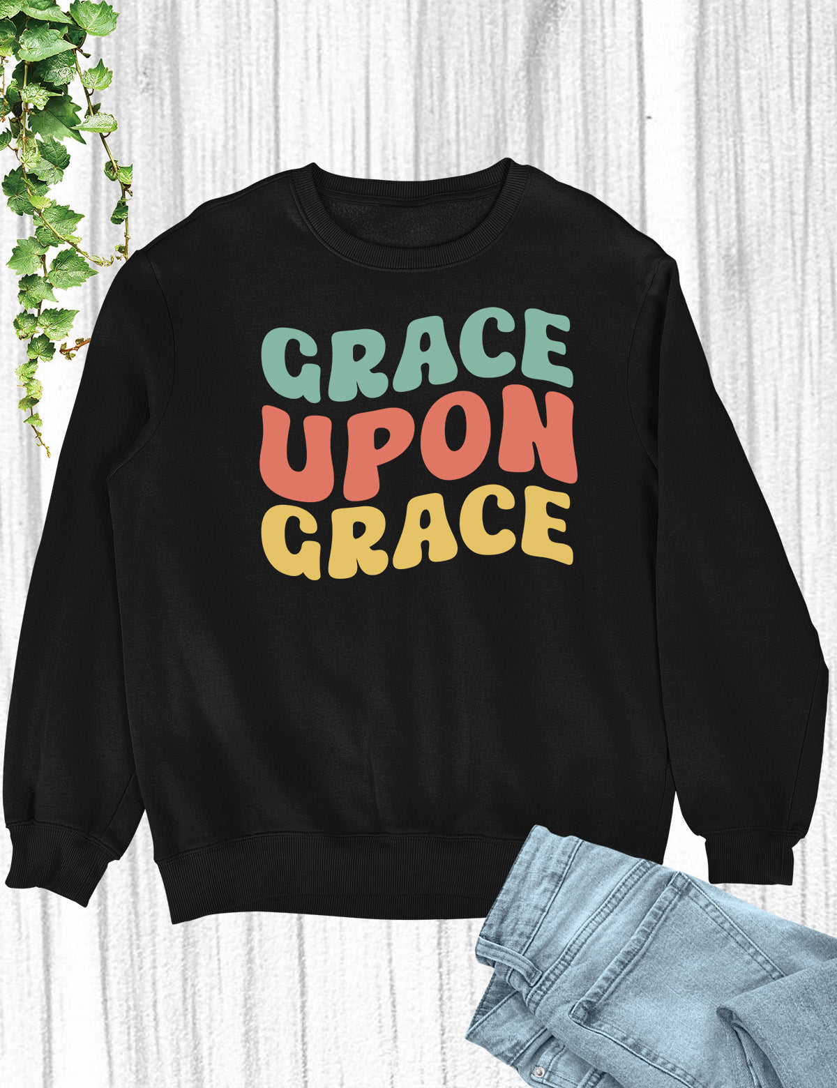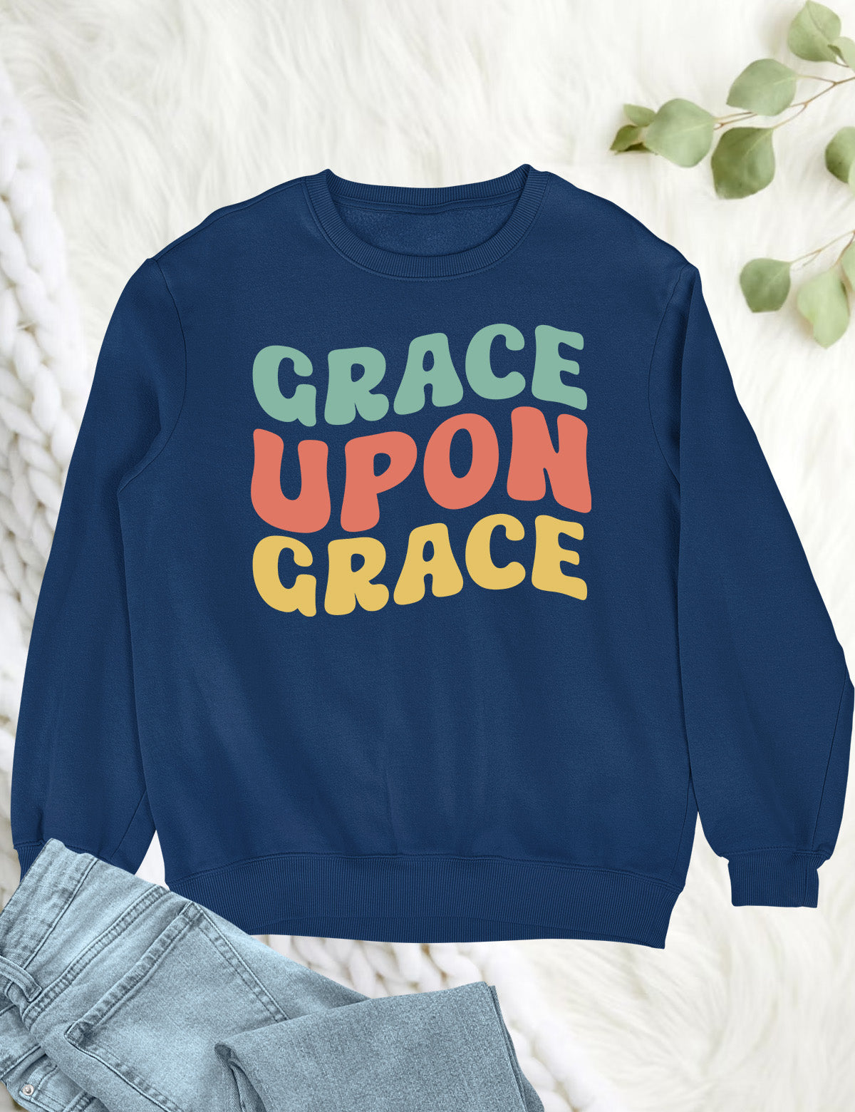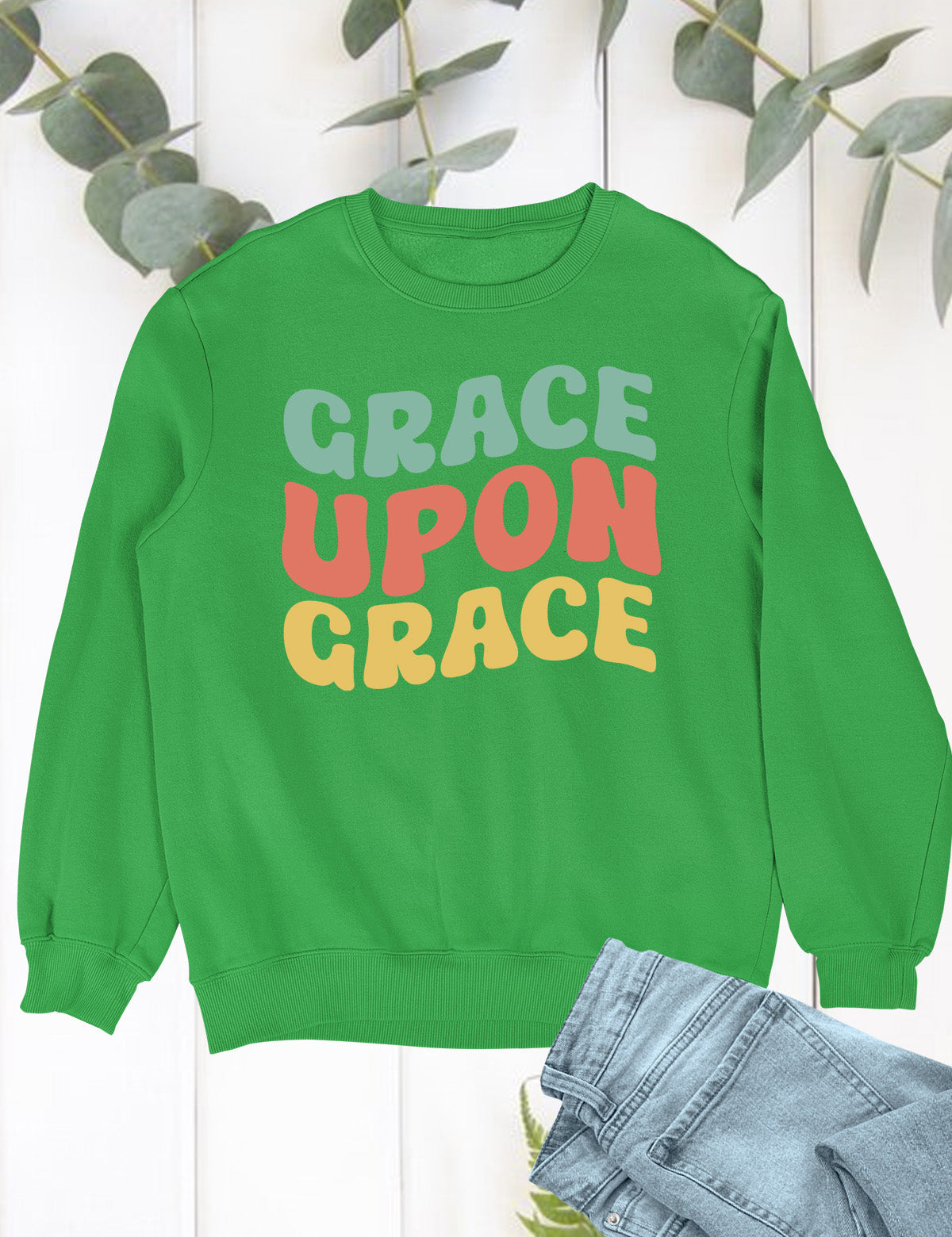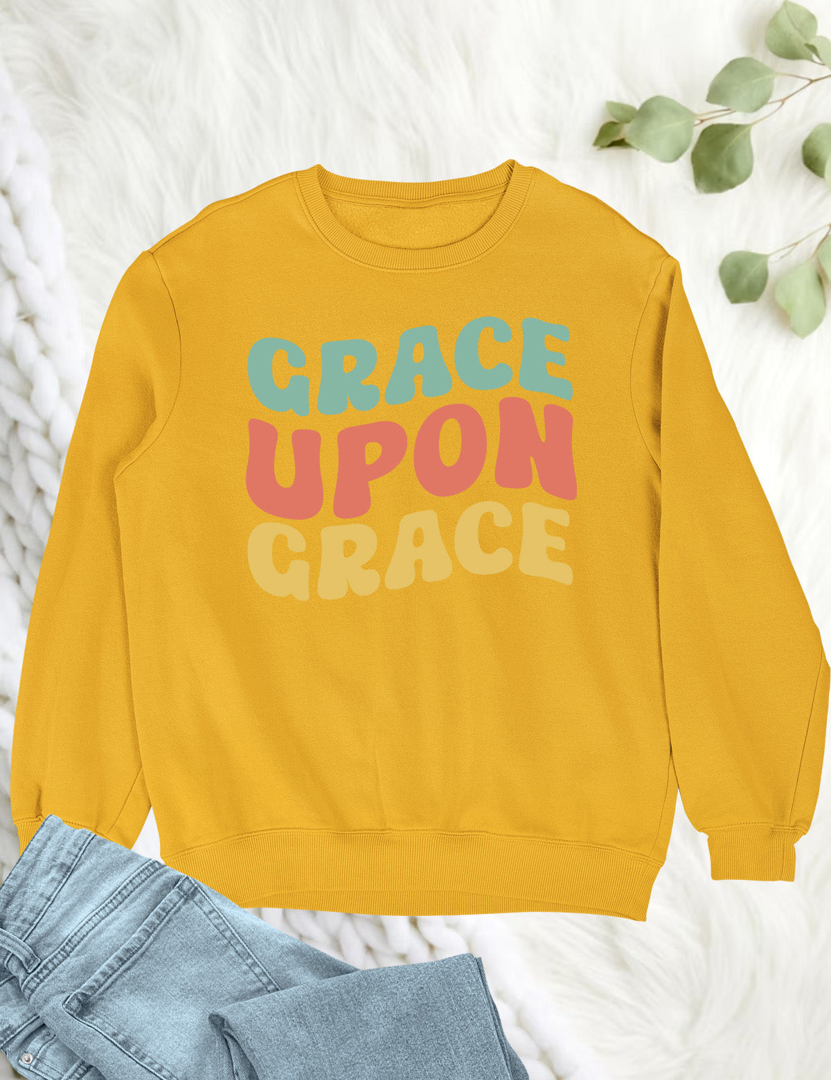 The Grace Upon Grace Christian Sweatshirt is a must-have for any Christian. Made with quality materials, this sweatshirt features a bold statement that serves as a reminder of God's never-ending grace. Stay warm and stylish while spreading an uplifting message with this sweatshirt.