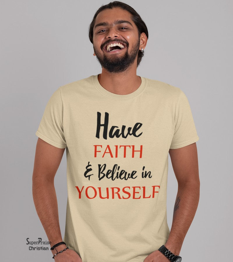 This Christian t shirt reinforces the important message to have faith and believe in yourself. Made with high quality materials, it serves as a constant reminder to stay strong and confident in your beliefs. A must-have for anyone looking for a daily dose of encouragement and motivation.