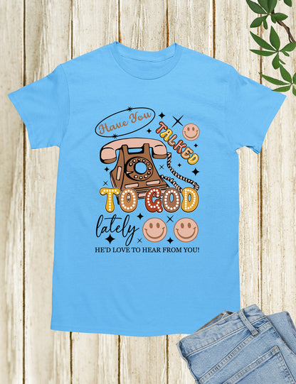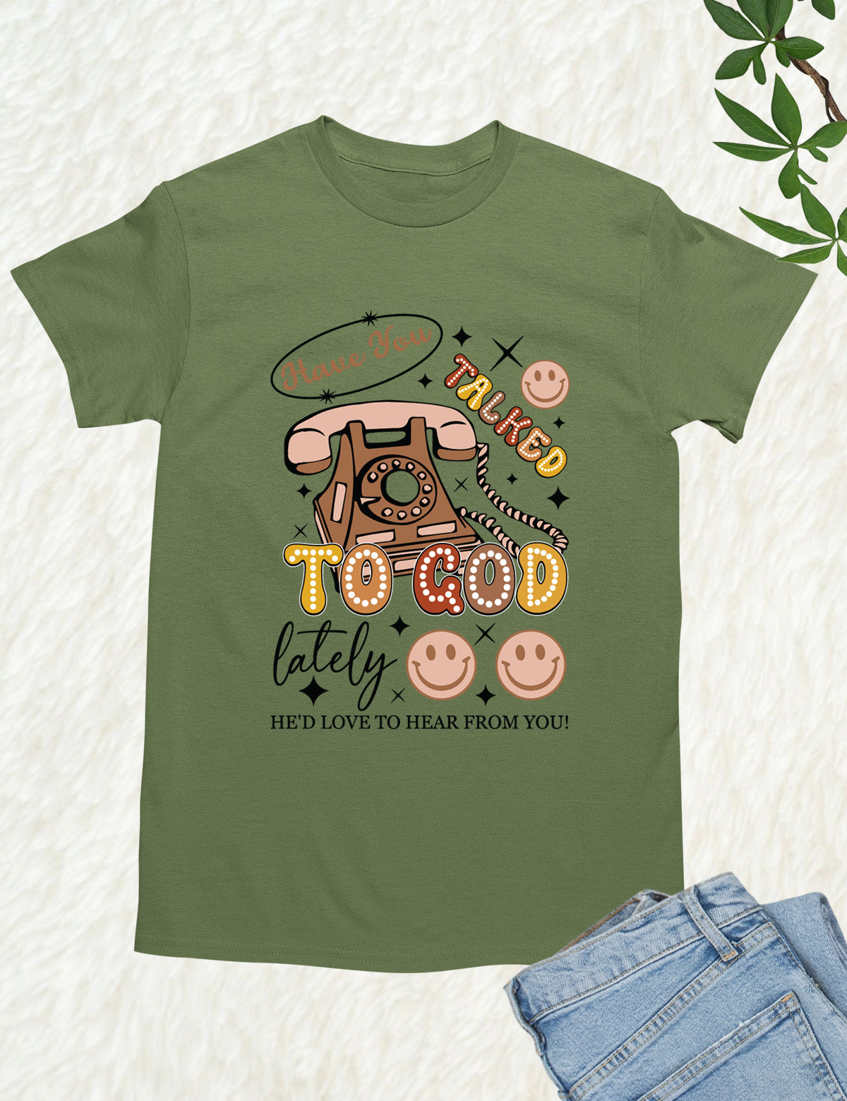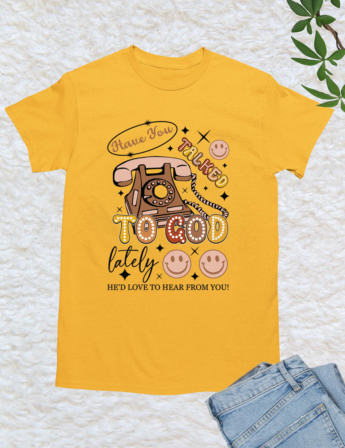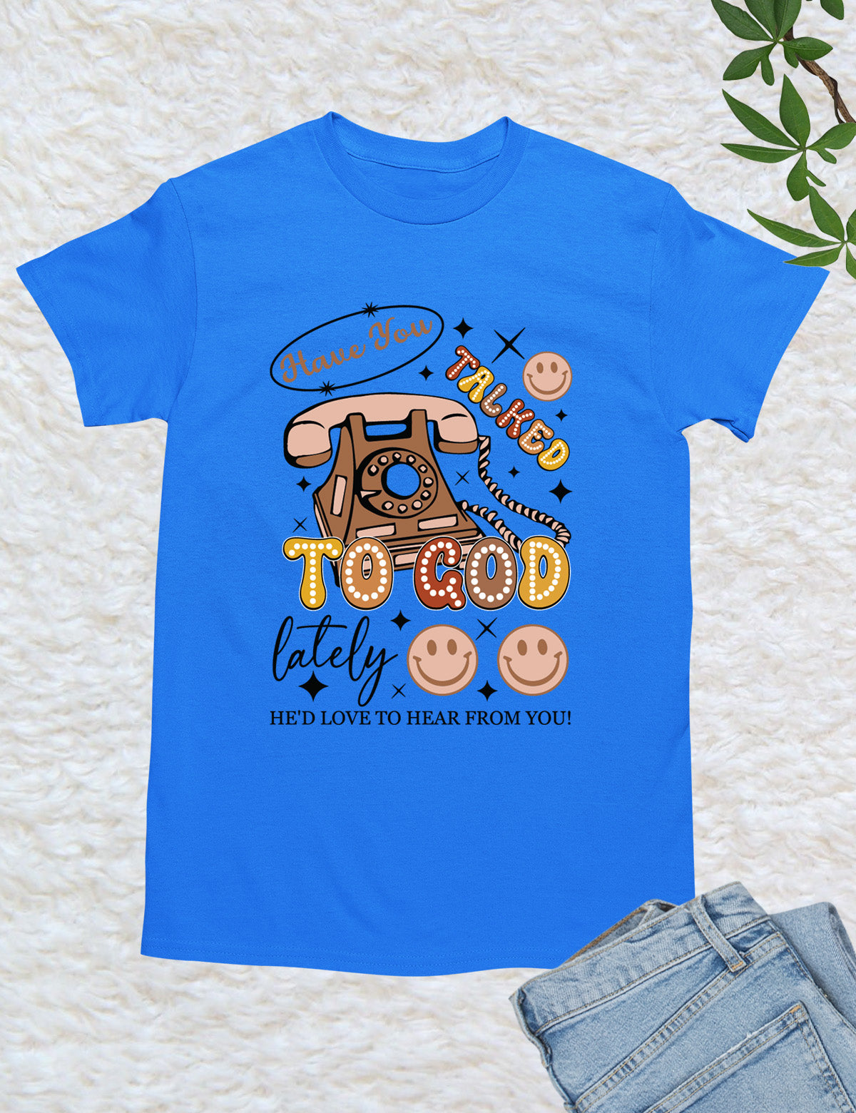 Stay spiritually connected with this "Have You Talked to God Lately" t shirt. Made with high-quality fabric, this shirt is a reminder to make time for meaningful conversations with our Higher Power. Show off your faith in style and spread positivity with this unique shirt.