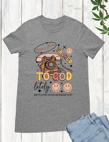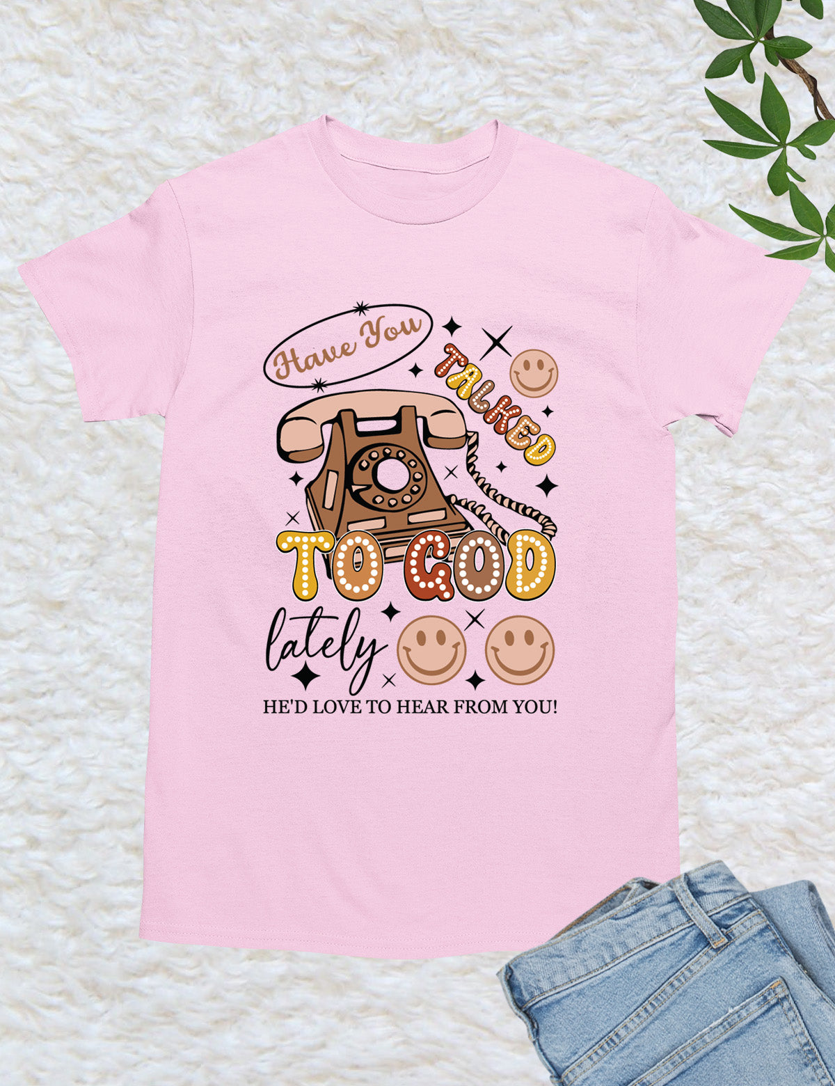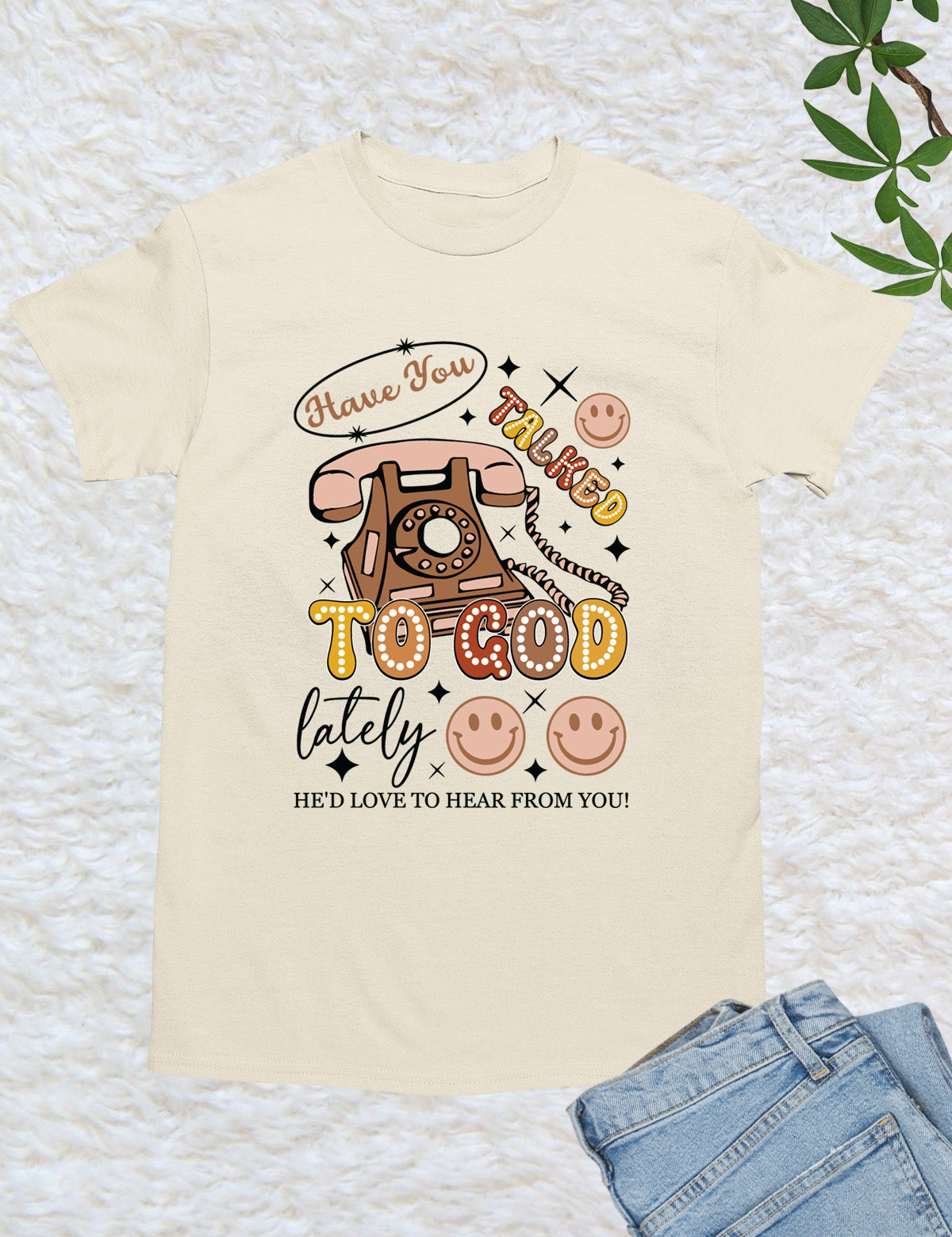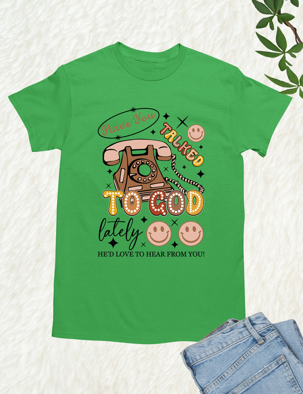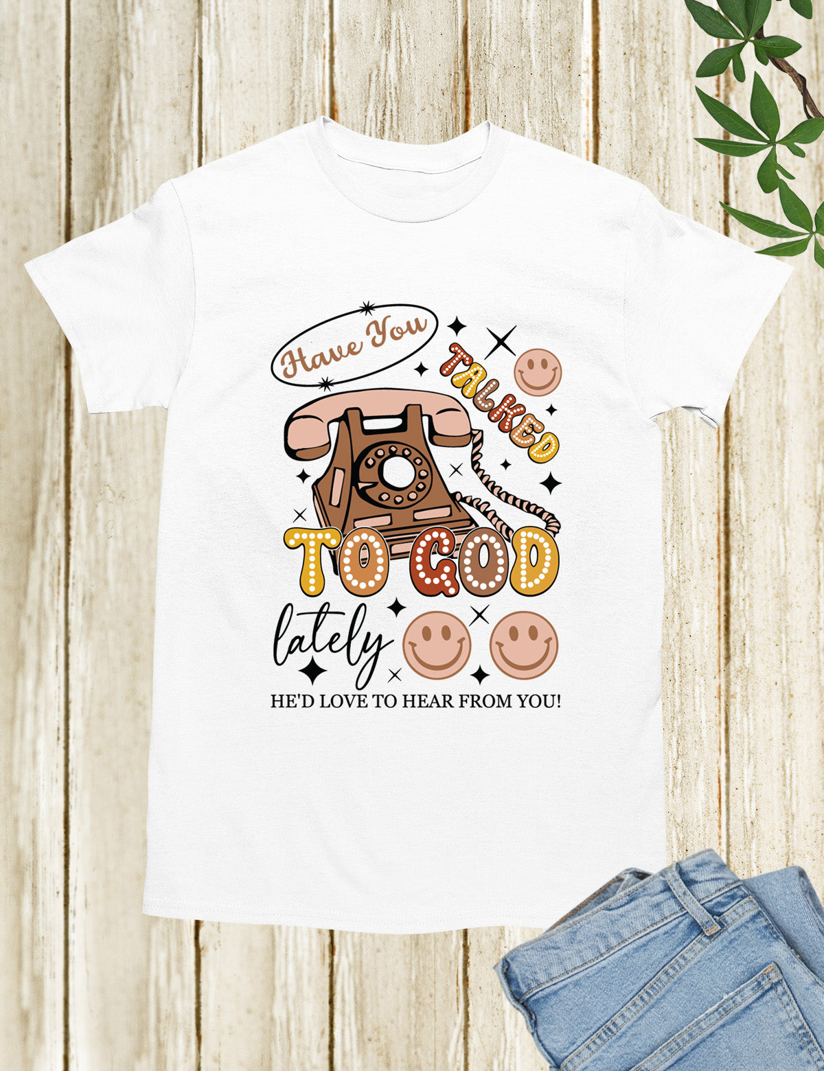 Stay spiritually connected with this "Have You Talked to God Lately" t shirt. Made with high-quality fabric, this shirt is a reminder to make time for meaningful conversations with our Higher Power. Show off your faith in style and spread positivity with this unique shirt.